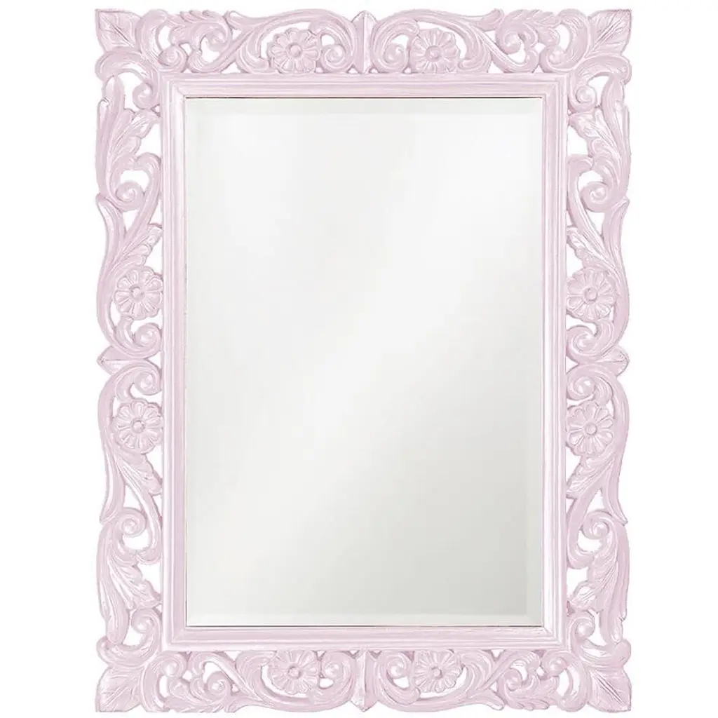 This darling mirror with its ornate, feminine detailing and beautiful pink blush hue is sure to elevate the look of any room!