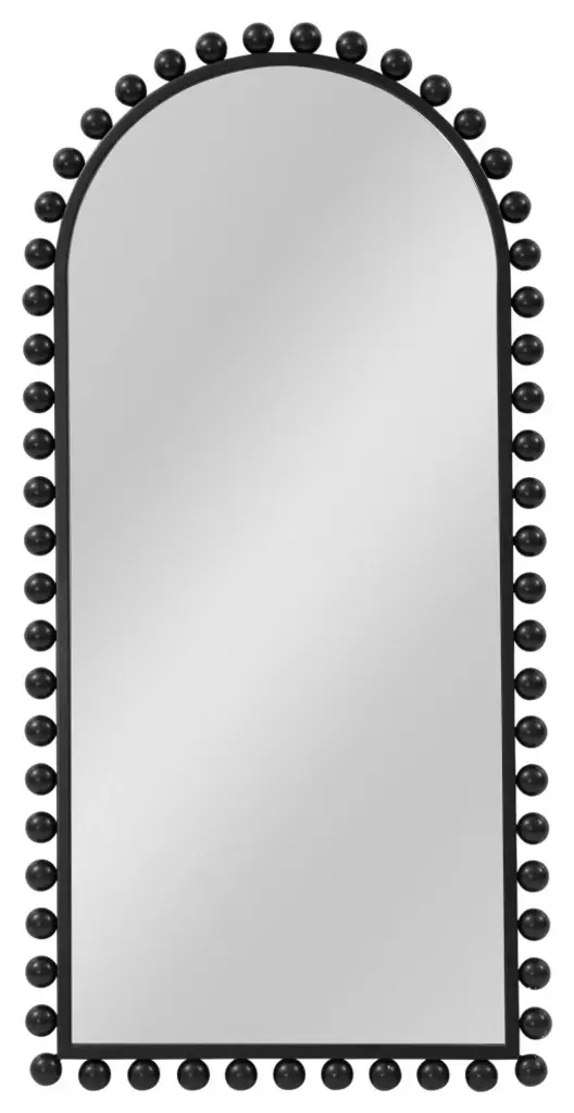 The Claria Wall Mirror features a distinctive arched frame adorned with a series of black beads, adding a bohemian twist to its modern style. The playful arrangement of the beads around the perimeter infuses a textural and visual interest that complements the mirror''s sleek, curved top. This piece merges the relaxed vibe of boho decor with the clean lines of modern design, making it a versatile and striking addition to any contemporary space seeking a touch of whimsy.Features:Arched frame accented with black beading for a boho-inspired lookTextural bead design adds visual interest and charmSleek, curved top blends bohemian and modern stylesVersatile piece perfect for contemporary or eclectic interiors