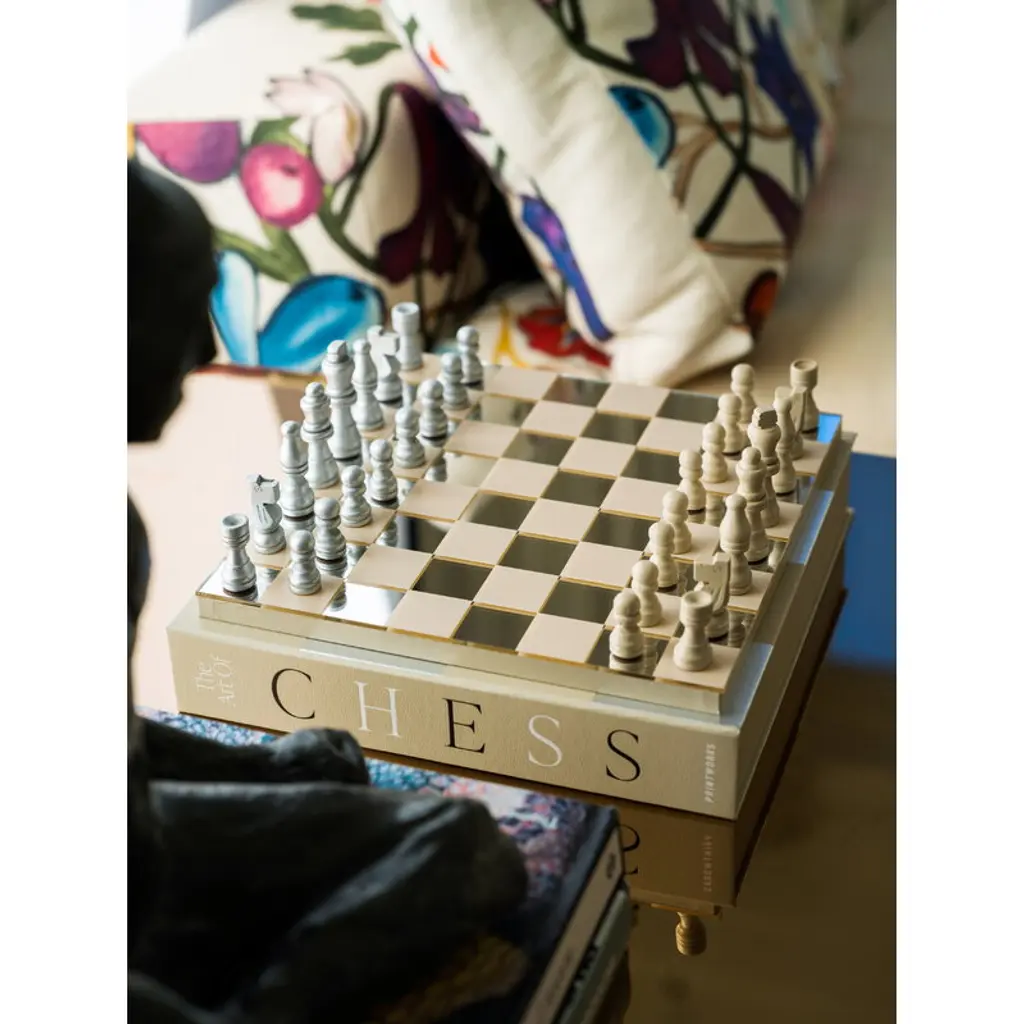 Printworks' Art of Chess offers an elegant interpretation of the classic chess game. Packaged in a stylish box, the game includes all the necessary playing tools, from wooden chess pieces to a chess board finished with a thin layer of mirrored acrylic, providing a mirror-like reflection. The box also contains easy-to-read instructions in English, French and German. Art of Chess is part of the Printworks' Classic collection which includes board games for adults and children alike. The playful board games are a great gift idea and a fun way to spend time together with friends and loved ones.