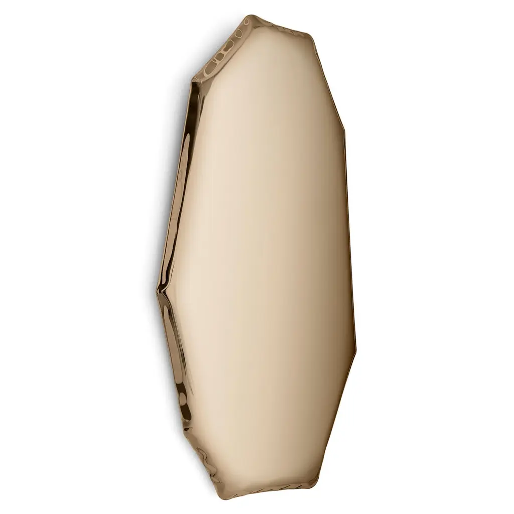 Classic gold tafla C3 sculptural wall mirror by Zieta.Dimensions: D 6 x W 67 x H 124 cm Material: Stainless steel. Finish: Classic gold. Available in finishes: stainless steel, deep space blue, emerald, sapphire, sapphire/emerald, dark matter, red rubin, light gold, classic gold, or rose gold. Also available in different sizes. Steel mirror in the form of a fragmented glass or rock – TAFLA C mirror by Zieta Studio is a modern uncompromising object. It is a wall sculpture that can be arranged in personalized groups to create artistic installations in private and public spaces.In the Transitions Collection, these unusual mirrors in various sizes and shapes are available in two colors: Red Rubin and Dark Matter. TAFLA C Red Rubin mirror resembles a piece of ruby, while the TAFLA C Dark Matter is like a gate to another dimension. This collection of mirrors will be a perfect decoration for a home with style or for a public space that aims to stand out in the crowd.The geometric TAFLA C comes in seven different sizes – it can be arranged in an artistic personalized composition or exposed on a wall as a single sculpture-like mirror.About Zieta: Zietas main goal is to deliver uniqueness and customization in design and construction while keeping the production, transport, and warehousing innovatively efficient.This is how they imagine the future world: Light, durable structures of customized applications produced on demand out of one-of-a-kind parts, yet efficiently.They use a computer-controlled production process. Customized pattern, customized form, customized function, one-of-a-kind product, and outstanding precision are what they deliver.You will find all of this philosophy reflected in the products. The research, they discover new possibilities, they play with forms and they deliver a beautiful, innovative, surprising outcome to people who love the design and who care about design development.They believe their work is a valuable contribution to the world of design not only by the unique beauty of the forms but most of all by opening ultra-innovative opportunities of forming and new paths for the world of the future.
