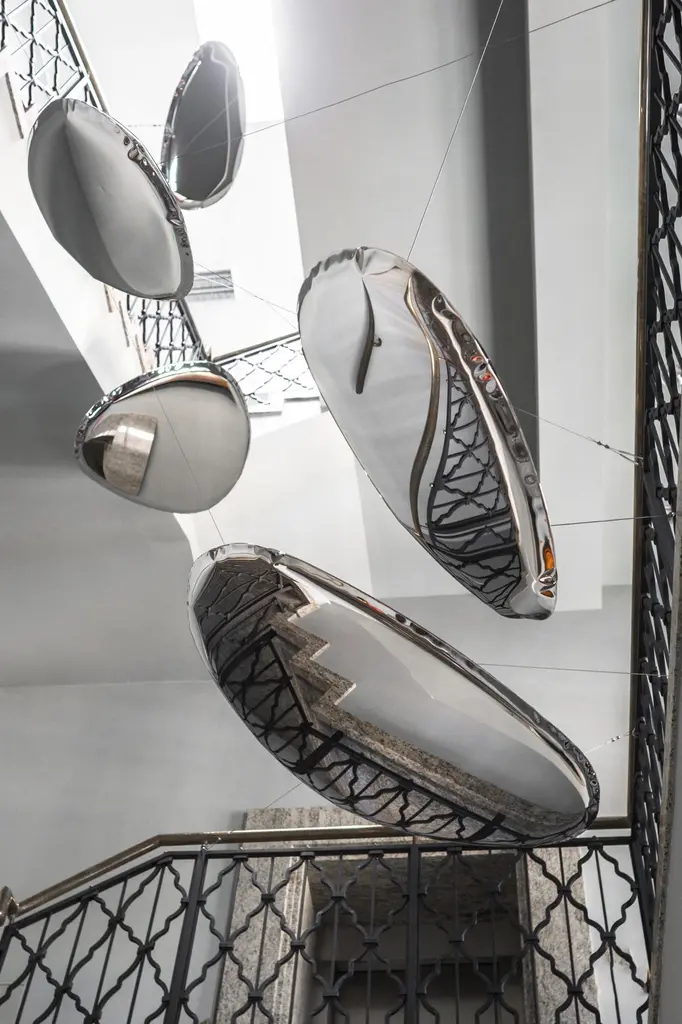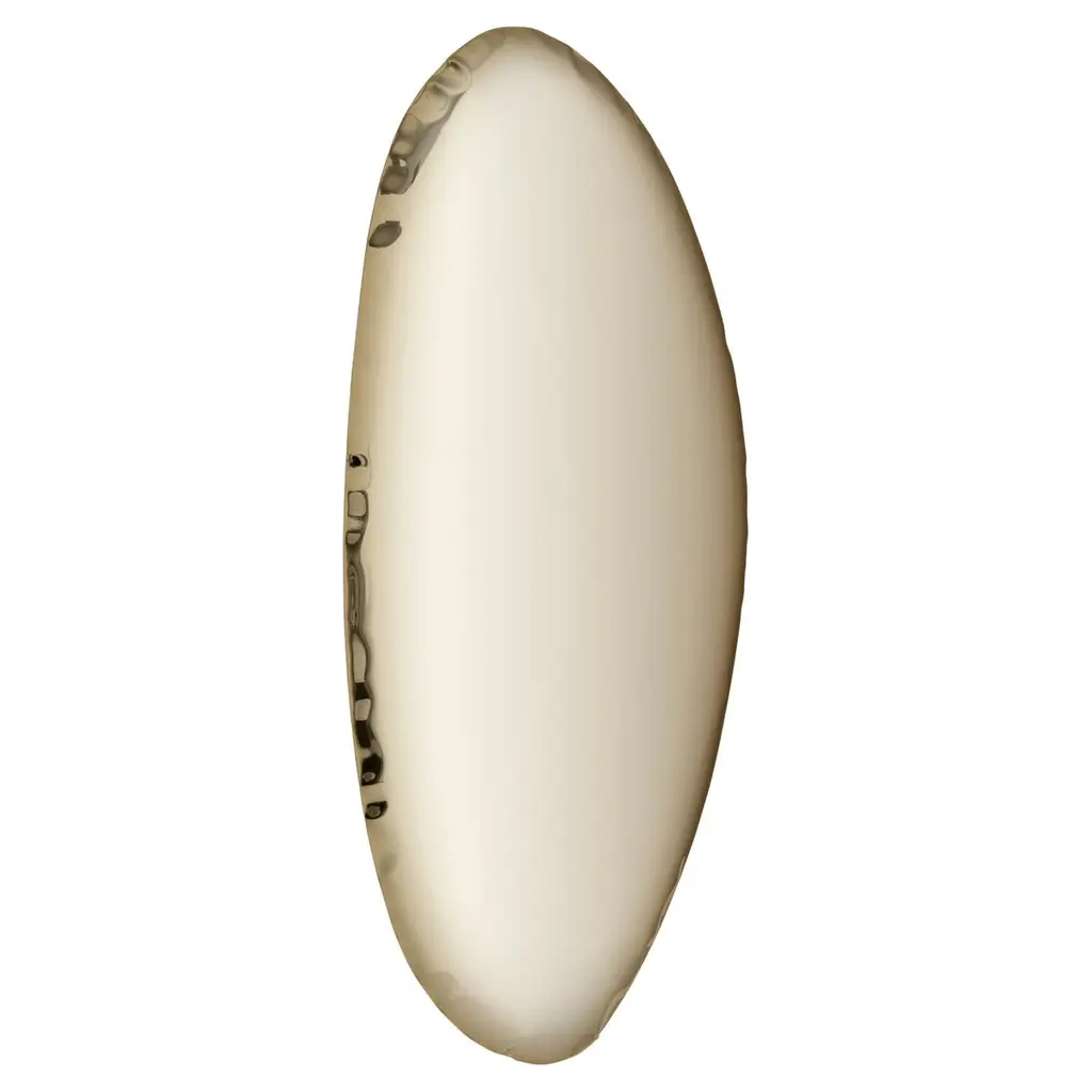 Classic Gold Tafla O2 wall mirror by ZietaDimensions: D 6 x W 97 x H 150 cm Material: Stainless steel.Finish: Classic gold.Available finishes: Stainless steel, white matt, Sapphire/Emerald, Sapphire, Emerald, deep space blue, dark matter, red Rubin, light gold, classic gold, or rose gold. Also available in other sizes.TAFLA O mirror is a bionic sculptural object made by Zieta Studio using FiDU technology. The irregular shape of the mirror is an effect of inflating two-dimensional metal sheets with pressurized air – this way, some slight distortions appear on the edges giving each object a unique character.The TAFLA O steel mirrors from the Transitions Collection come in two colors: Rubin Red and Dark Matter. These well-defined, intense hues were created with extravagant interiors and their users in mind. Such mirrors covered with semi-transparent lacquer will be a stunning addition to stylish private living rooms, hotel lobbies, and restaurants.TAFLA O comes in seven different sizes – it can be arranged in a personalized artistic composition or exposed on a wall as a single sculpture-like mirror.About Zieta: Zieta's primary goal is to deliver uniqueness and customization in design and construction while keeping the production, transport, and warehousing innovatively efficient.This is how they imagine the future world: Light, durable structures of customized applications produced on demand out of one-of-a-kind parts yet efficiently.They use a computer-controlled production process. Customized pattern, customized form, customized function, one-of-a-kind products, and outstanding precision are what they deliver.You will find all of this philosophy reflected in the products. Their research discovers new possibilities, plays with forms, and delivers a beautiful, innovative, surprising outcome to people who love the design and care about design development.They believe their work is a valuable contribution to the world of design by the unique beauty of the forms and by opening ultra-innovative opportunities for forming new paths for the world of the future.