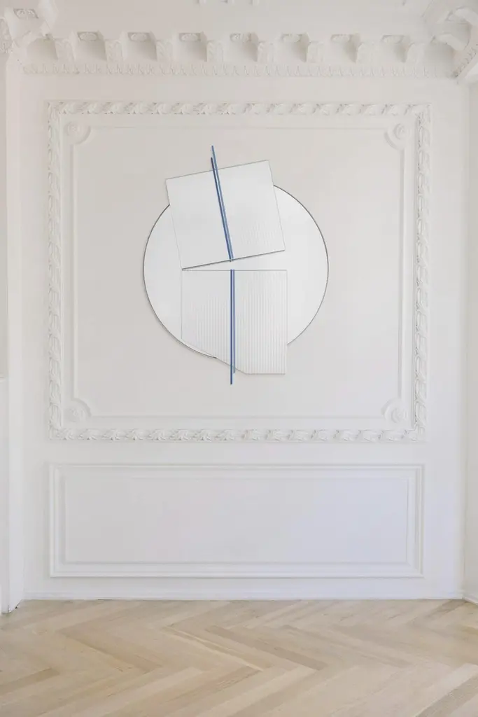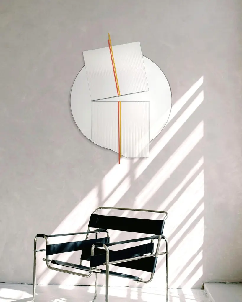 The collection is a set of collages where traditional functionality is eased and the focus is on the creative design thus elevating the objects to art pieces.Lead by simple shapes, a primary color palette, and a zest for superimposing textures, the Claude mirror opens up the space and diffuses light without overly distracting the eye with reflections. The collection is an homage to Marie's uncle Claude Belleudy, a contemporary painter and sculptor who lived a recluse life in a mountainous region of the South of France.