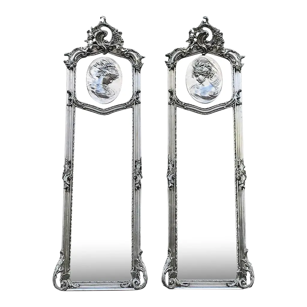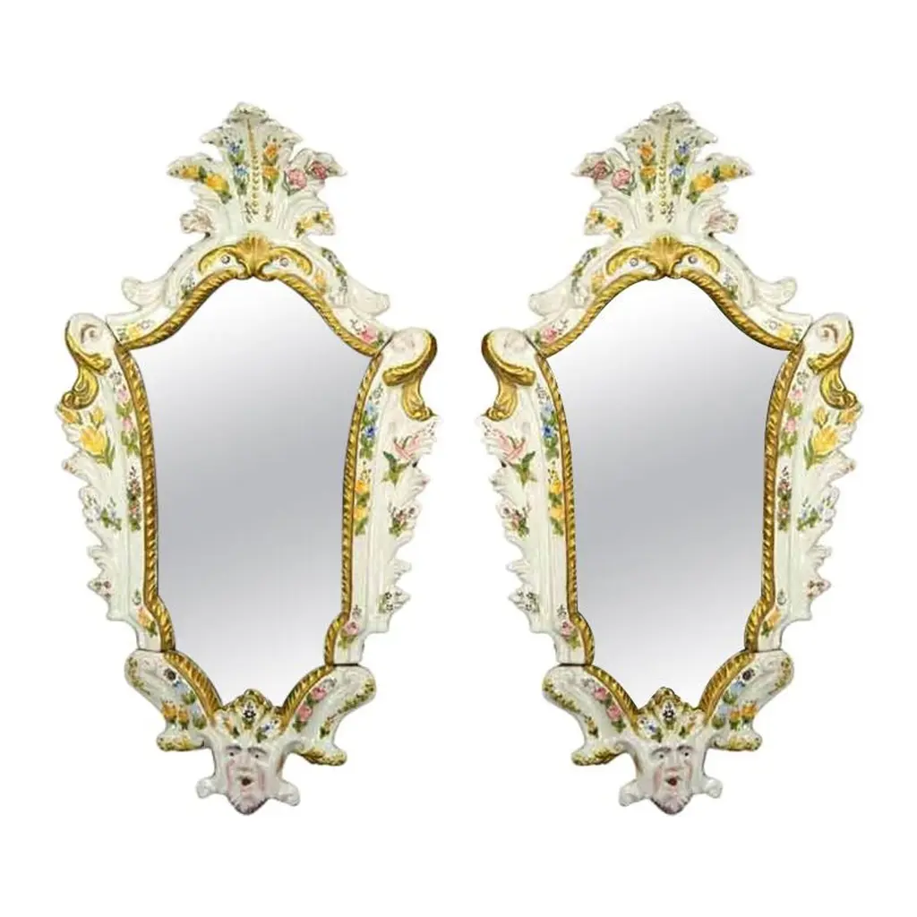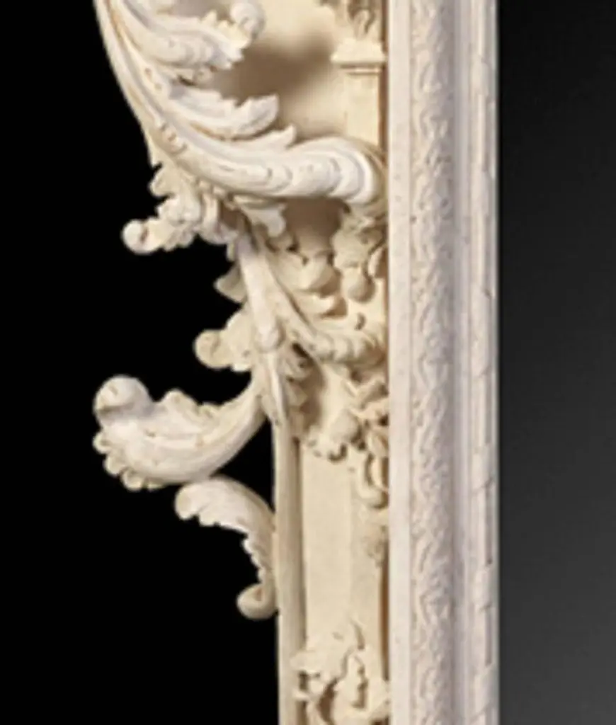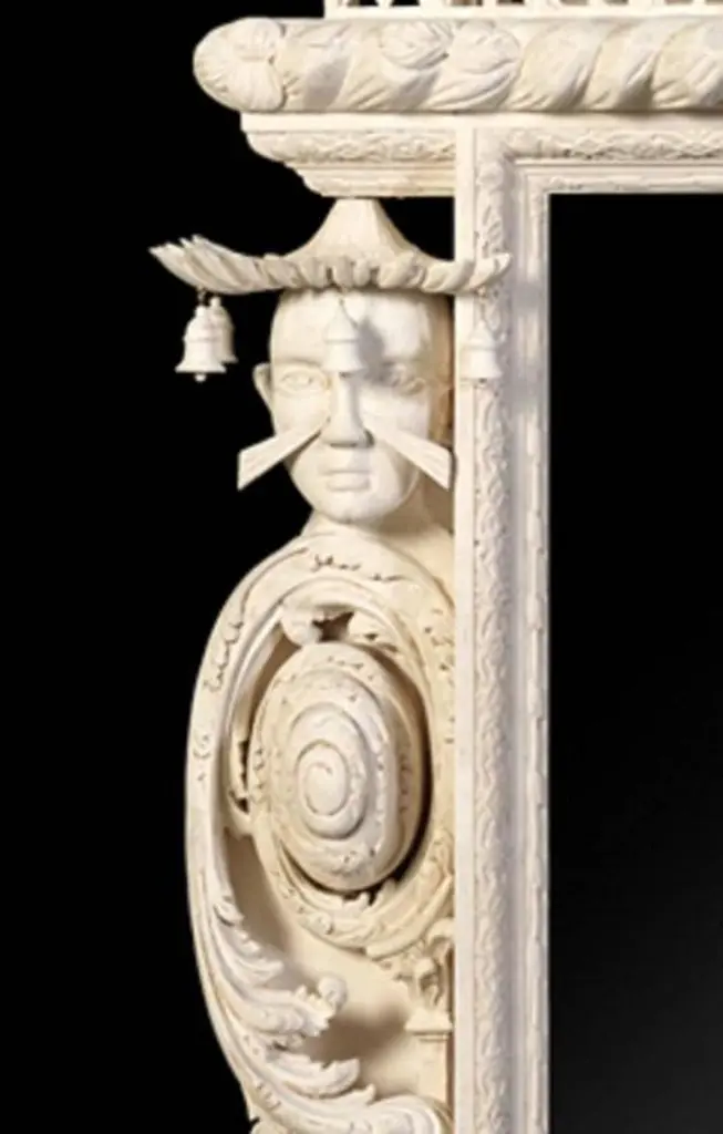 An exceptional pair of rectangular carved pier mirrors, inspired by the Chinese Room of Claydon. The elaborate carved decoration following the style of Luke Lightfoot in the chinoiserie taste, a term used to express the frivolous Chinese style of decoration that enjoyed a tremendous vogue throughout Europe in the mid-18th century. The mirrors take the form of a Chinese fretwork tea house with overhanging eaves trimmed with icicles, bells and exuberant Rococo decoration. The front and sides embowered by clambering vines.We are currently working to a 30-36 week lead time.