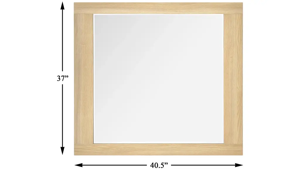 Complete your bedroom decor with the clean and functional modern Clayton Mirror. Featuring a simple yet elegant natural wood grain finish, this mirror perfectly complements a variety of dresser styles, adding both practicality and a touch of understated sophistication to your space. Crafted with a durable combination of 3D paper, premium melamine board, wood, and engineered wood, this mirror offers lasting quality. The melamine laminate surface is designed to resist scratches and stains, ensuring it maintains its attractive appearance over time. Its clean, rectangular design provides a generous reflective surface for dressing and grooming. Please note that assembly is required upon arrival.