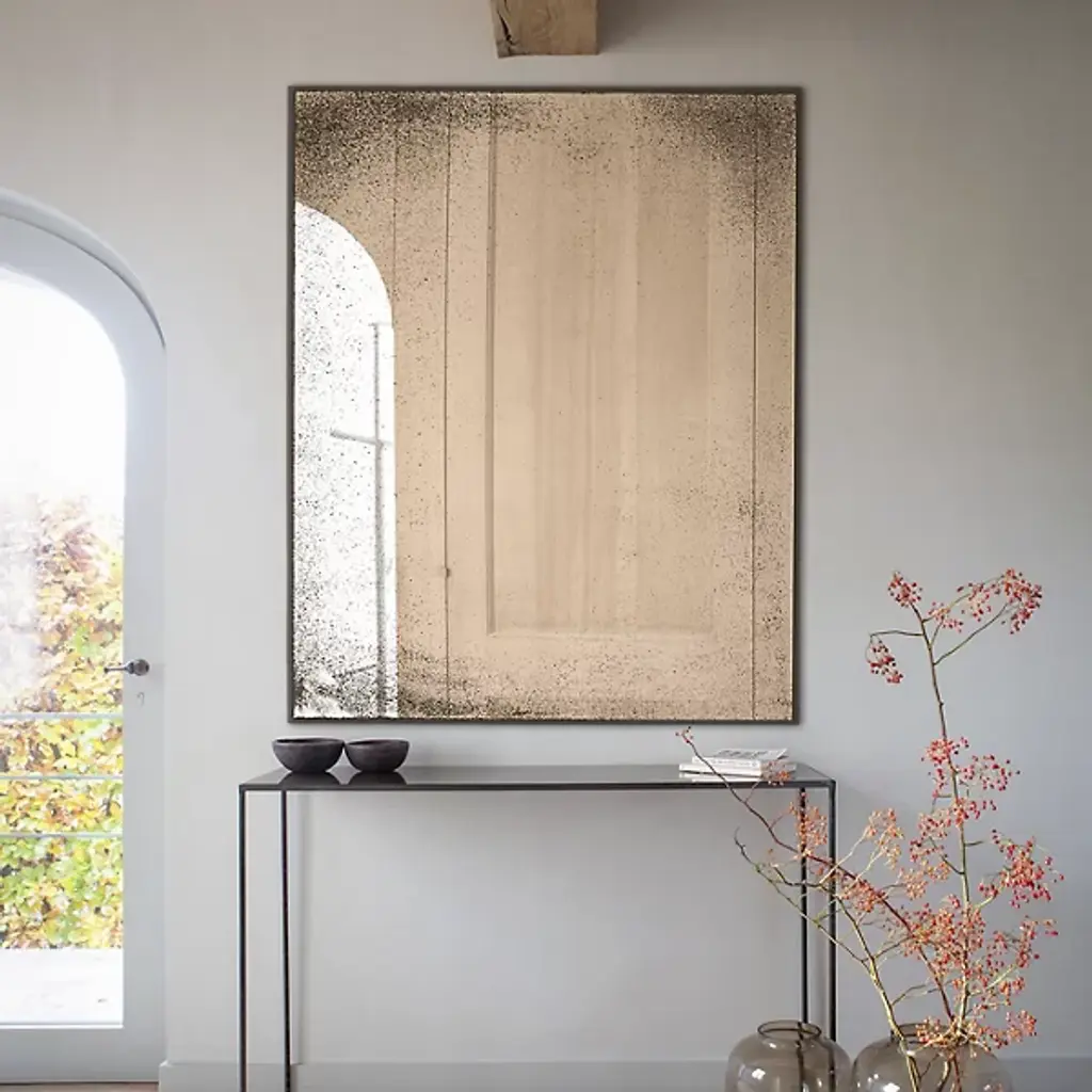 Reflect on your good fortune of having the delightful Clear Light Aged Wall Mirror from Ethnicraft to enhance your indoor living spaces. An angular, sharp-cornered offering designed by Dawn Sweitzer, it offers an industrial iron accent that reflects its surroundings from the center, while an aged patina lends it a touch of solemn gravity.