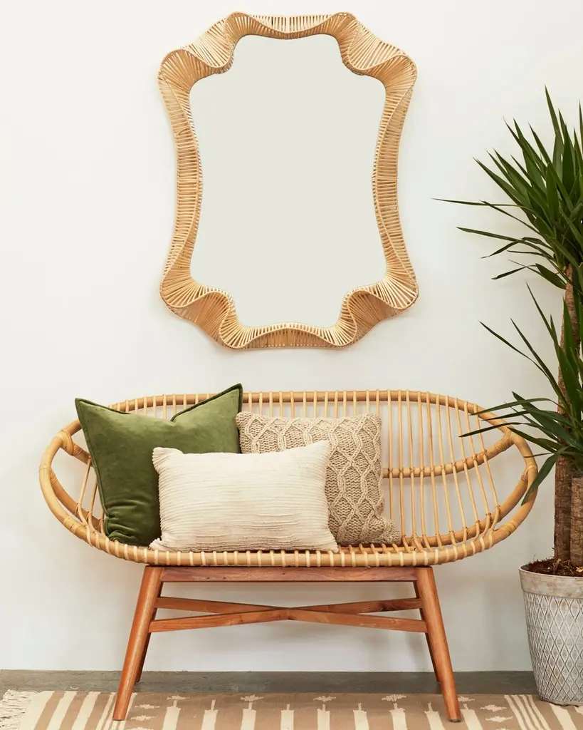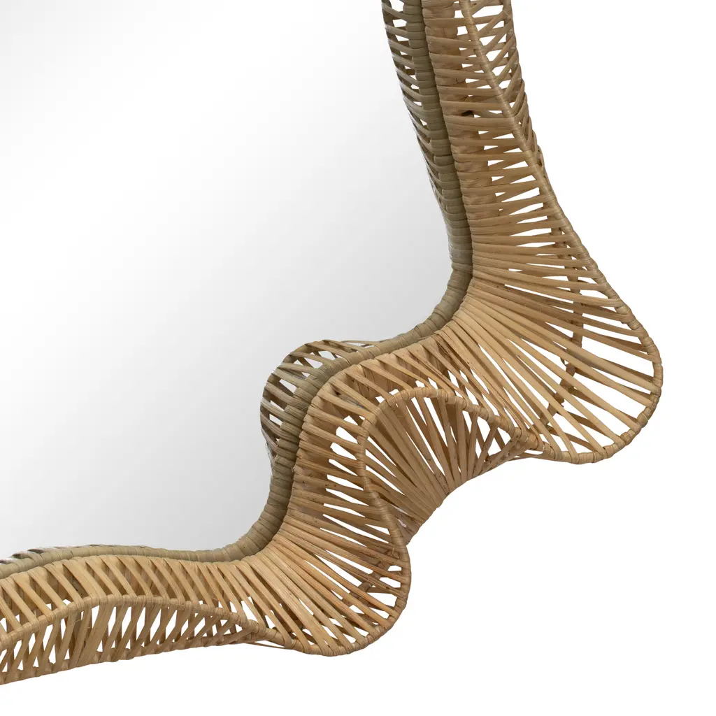 Named after the sleepy surf town in Southern California, the Clemente Mirror lends a touch of organic sophistication to your home. Featuring a halo of rattan peel handwoven around a metal frame, this mirror draws inspiration from waves crashing along the shore. Dimensions: 28" x 5" x 37.5"Materials: Wire Frame with Rattan PeelWeight: 18.7 lbs