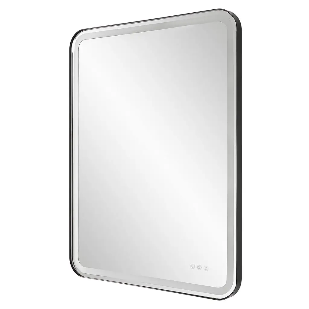 Embrace the allure of modern elegance with this exquisitely versatile mirror, a masterpiece of design that transcends mere functionality. Its integrated LED lighting casts a gentle glow through the frosted strip, creating a mesmerizing dance of light and shadow on the polished edges. The mirror's metal frame, gracefully offset from the wall, allows a soft halo of ambient light to envelop your space, setting the perfect mood for any occasion. With intuitive touch buttons elegantly positioned for ease of use, you can effortlessly control the on-off function, adjust the kelvin from a warm 2700k to a cool 4000k, and fine-tune the brightness to your heart's desire. The LED lights, with an impressive lifespan of 40,000 hours, promise enduring brilliance. Even in the quiet embrace of darkness, the touch screen icons remain softly illuminated, guiding you with ease. This mirror is not just a reflection of your visage, but a reflection of your impeccable taste.