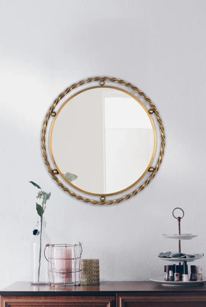 Decorative mirrors are the perfect way to add dimension and a touch of finesse to your walls. Use the stylish Cleo Mirror to punctuate the vacant space above your sofa or bed, or hang it alongside existing decor to create a striking gallery wall.100% handcrafted rich metals with hand-finished treatmentsMultidimensional metal wall mirror in flamed steel, brass and copperDimensions: W 28" x D 1.2" x H 28"Materials: Metal and glass