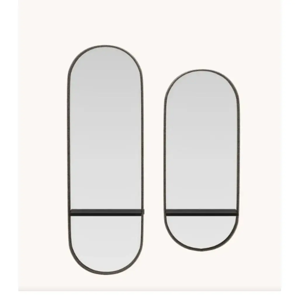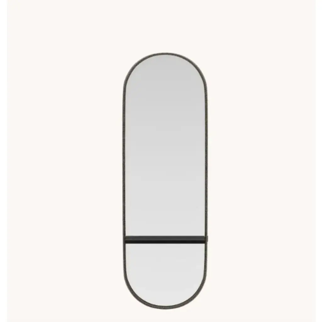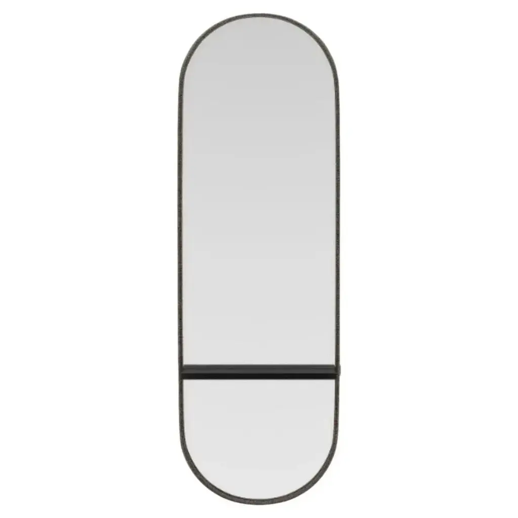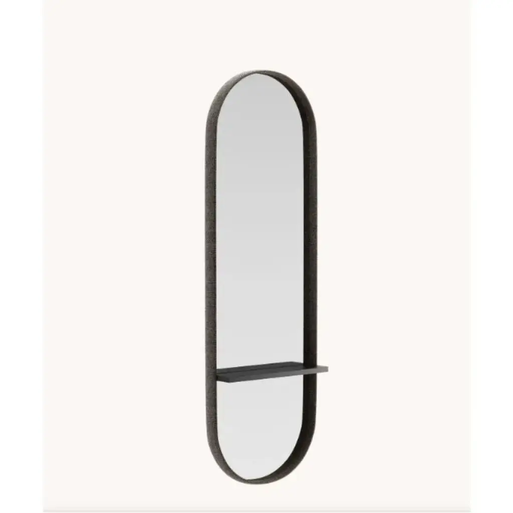 Cleo s mirror by domkapa dimensions: w 62 x d 17 x h 152 cm. Materials: black lacquered matte, fiber (helmand 53), smoked mirror. Also available in different materials. Curvy, minimal, and distinctive, cleo is an opulent mirror design that will upgrade your design project. The oval shape of this mirror is only one of the many features that, when combined, result in an exclusive accessory that enhances the beauty of a project. The mirror frame is upholstered in the fabric you choose and a wooden shelf is included in the middle of the piece for extra support. Cleo mirror is something you’ve never seen before and will be the perfect addition to your project.