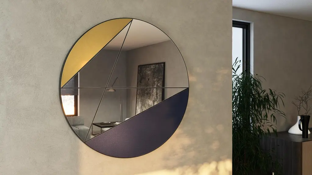 ClepsydraAs a journey through the time, where lives can cross or never meet, the lines run along the surface of the clepsydra mirrors, approaching the most diverse materials while preserving their uniqueness.Entirely crafted by hand, these amazing mirrors were born by the harmonious synthesis of the Italian taste creativity and a deep technical knowledge of the materials. Geometry and colors come together to create a stunning collection of must have pieces.Clepsydra IV D90 cmMirrorMaterial inserted: Blue leather - Yellow leatherFrame: Iron steel black powder paintedAvailable sizes Diameter : Ø 70 / 80 / 90 / 100 / 120 cmDepth: 3 / 5 cmThis item is entirely handmade in our factory using natural materials.Therefore each item is to be considered a uniques pieces: each small varation in color or trimming constitutes an extra value of the craftmade item.