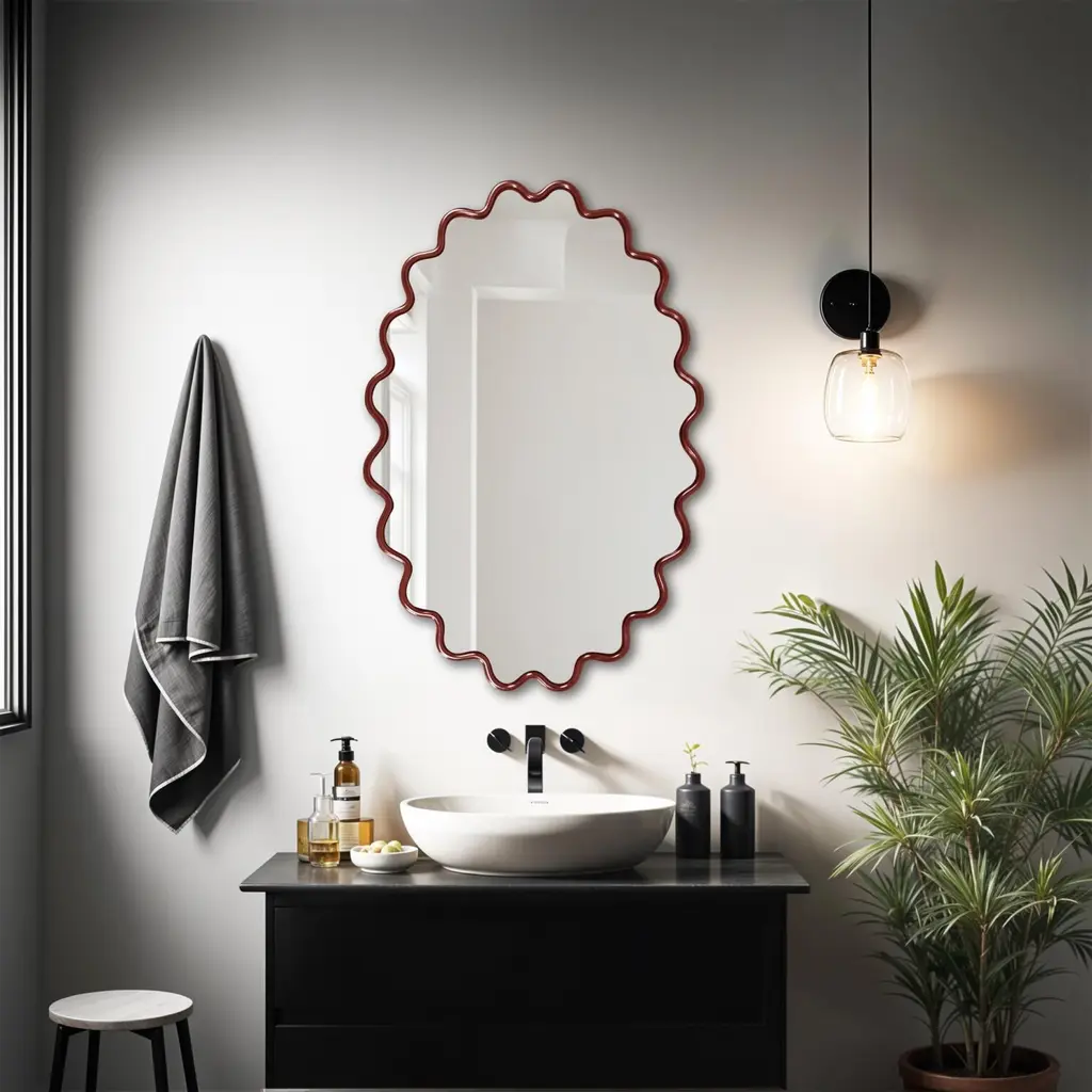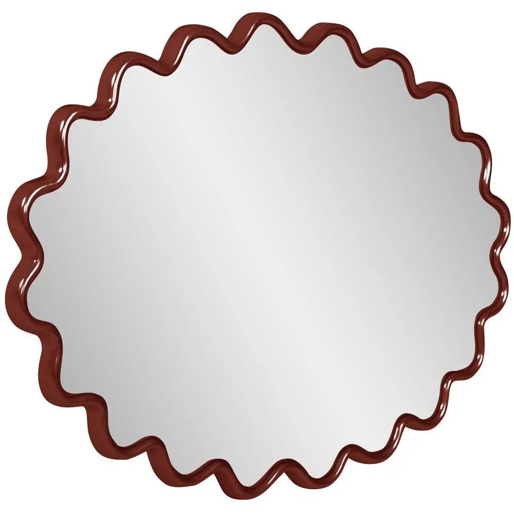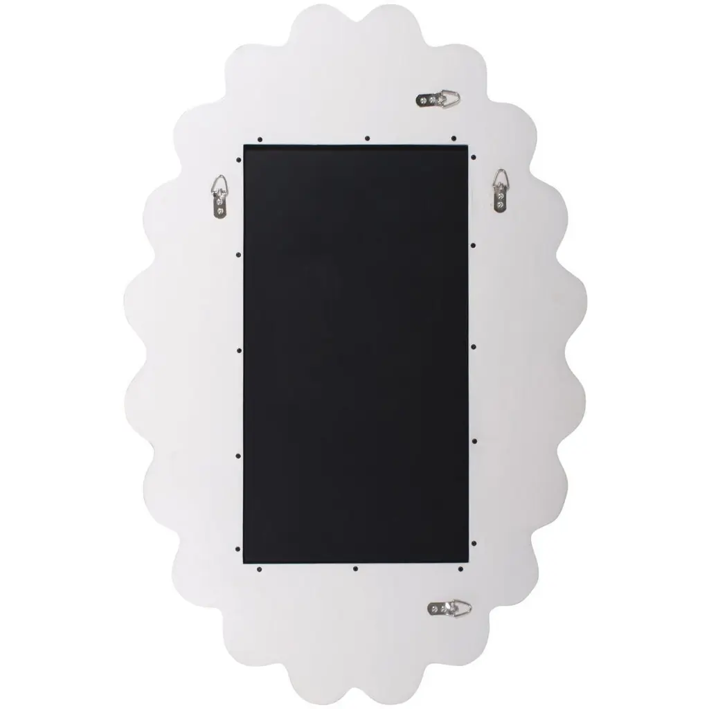 The Cloud Mirror features a wavy frame that is meticulously hand-painted in the USA. This mirror is designed to complement and enhance the aesthetic of any modern decor. Its versatile design allows it to be hung both horizontally and vertically, offering flexibility. It also comes equipped with sturdy D-rings on the back, ensuring easy and secure installation. This chic mirror effortlessly fits into contemporary living spaces.
