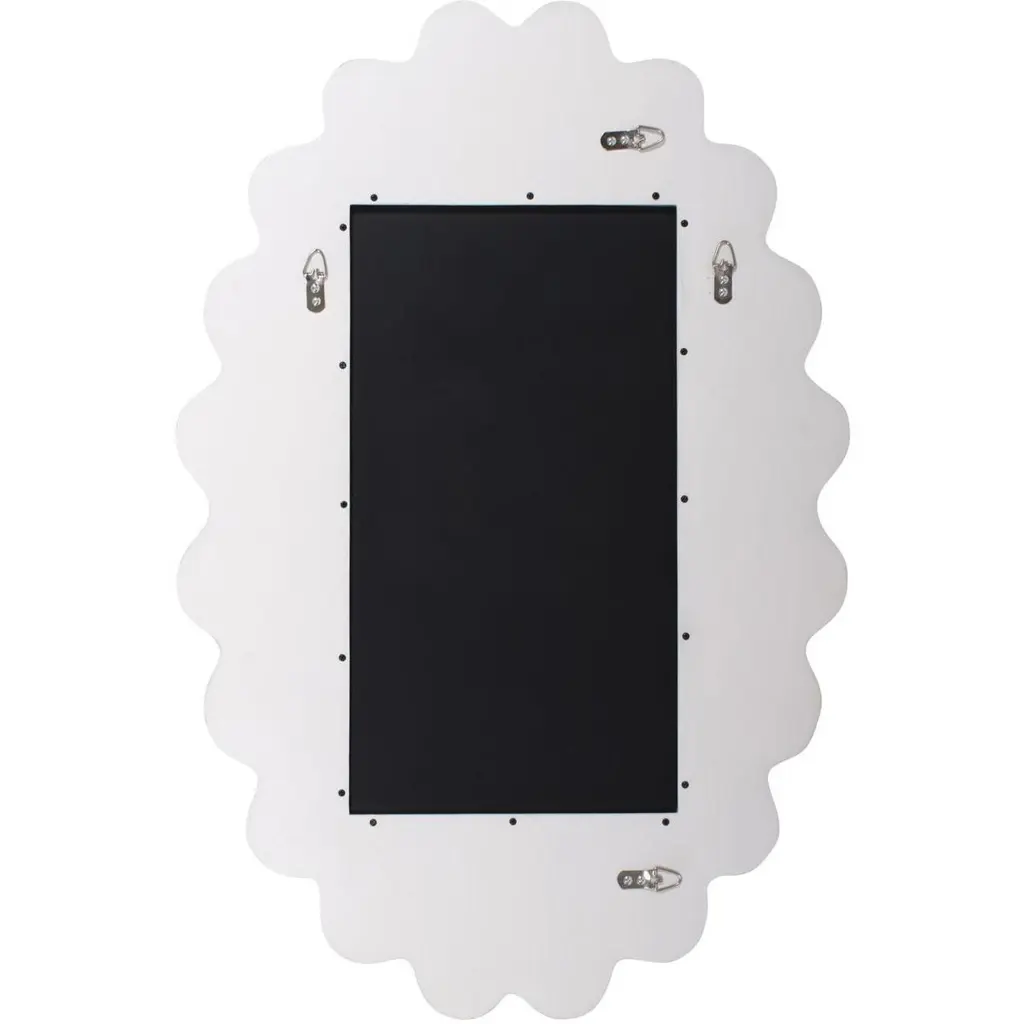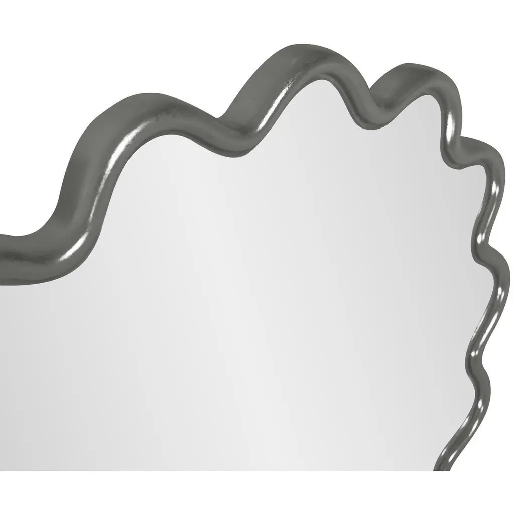 The Cloud Mirror features a wavy frame that is meticulously hand-painted in the USA. This mirror is designed to complement and enhance the aesthetic of any modern decor. Its versatile design allows it to be hung both horizontally and vertically, offering flexibility. It also comes equipped with sturdy D-rings on the back, ensuring easy and secure installation. This chic mirror effortlessly fits into contemporary living spaces.