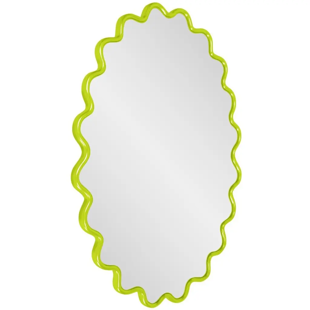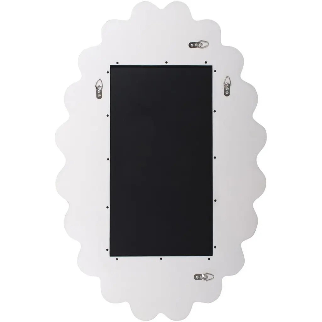 The Cloud Mirror features a wavy frame that is meticulously hand-painted in the USA. This mirror is designed to complement and enhance the aesthetic of any modern decor. Its versatile design allows it to be hung both horizontally and vertically, offering flexibility. It also comes equipped with sturdy D-rings on the back, ensuring easy and secure installation. This chic mirror effortlessly fits into contemporary living spaces.