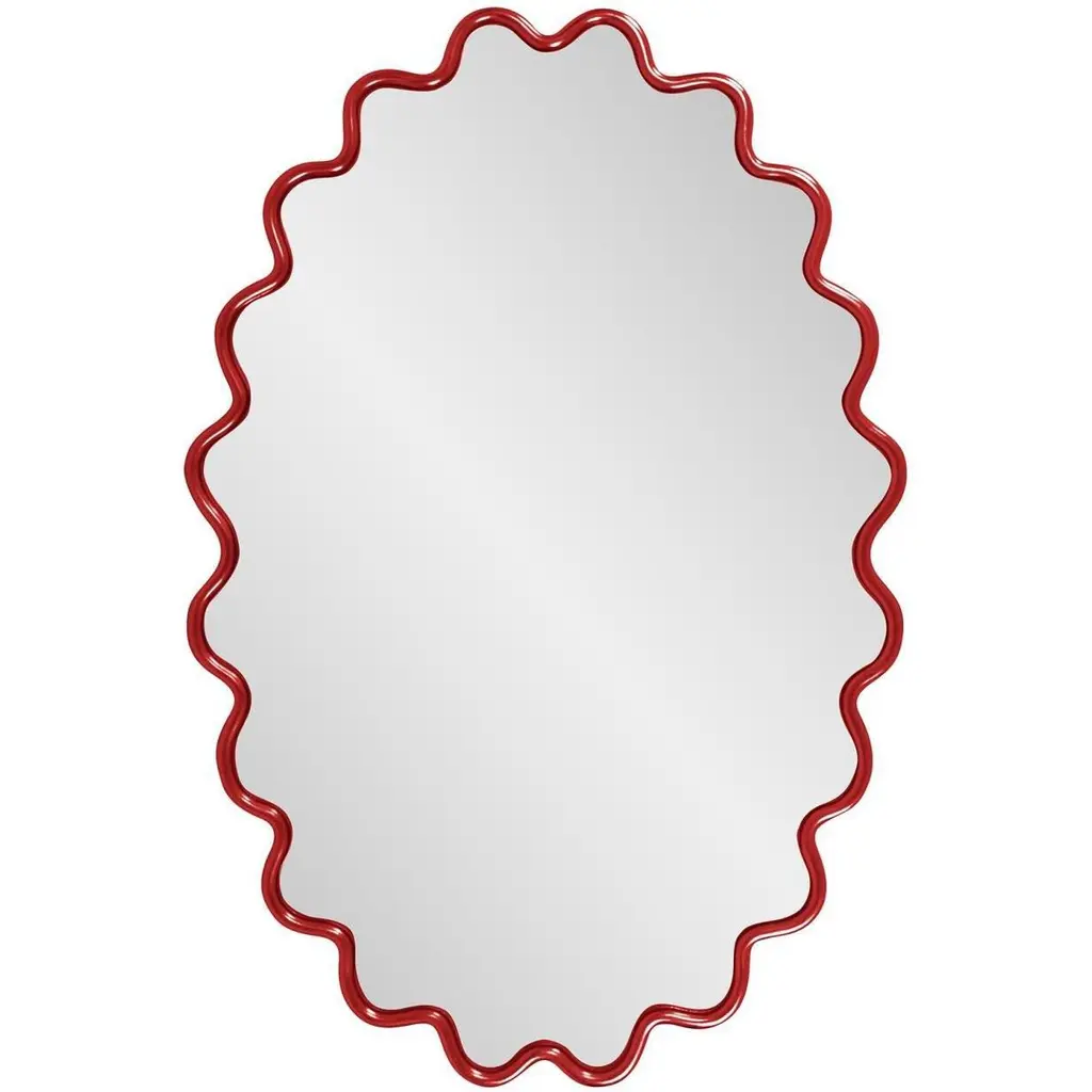 The Cloud Mirror features a wavy frame that is meticulously hand-painted in the USA. This mirror is designed to complement and enhance the aesthetic of any modern decor. Its versatile design allows it to be hung both horizontally and vertically, offering flexibility. It also comes equipped with sturdy D-rings on the back, ensuring easy and secure installation. This chic mirror effortlessly fits into contemporary living spaces.