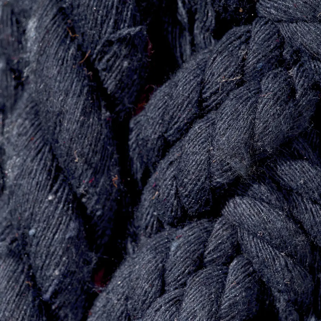 Indigo blue cotton rope is jauntily woven by hand to create the nautically inspired patterns that cover the frame of this oval wall mirror. A fun, bright wall accent for any coastally inspired environment, it is the perfect size to place by a door for those last-minute fit checks