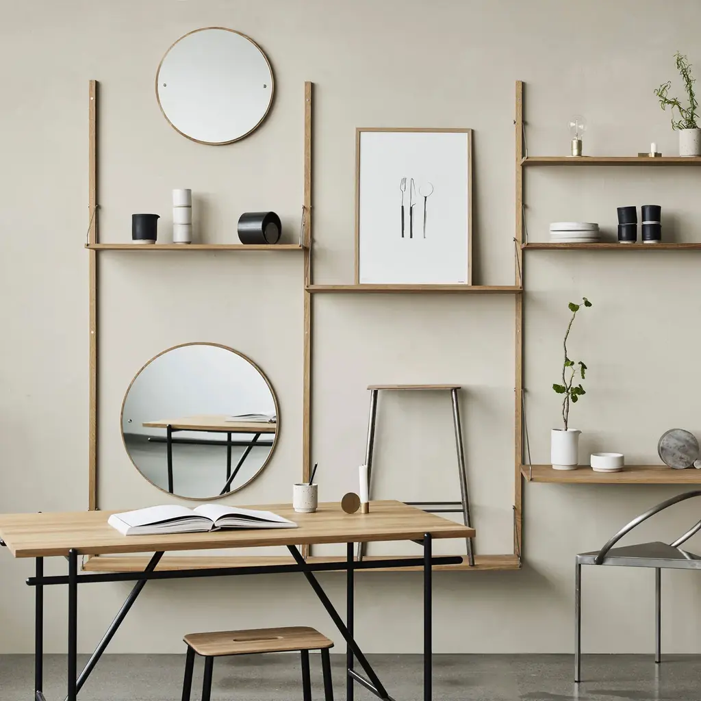 Copenhagen’s Frama provides a spare but elegant update on a quintessential shape with CM-1 Circle Mirror. Featuring a solid-oak back, premium mirrored surface, and exposed brass screws, the timeless design adheres to the Nordic tradition of simplicity and honest materials. In a choice of 3 sizes and easily mounted on the wall, it adds its brightening reflection to any setting.