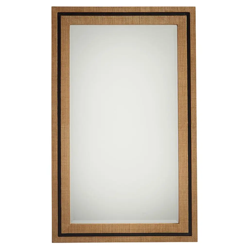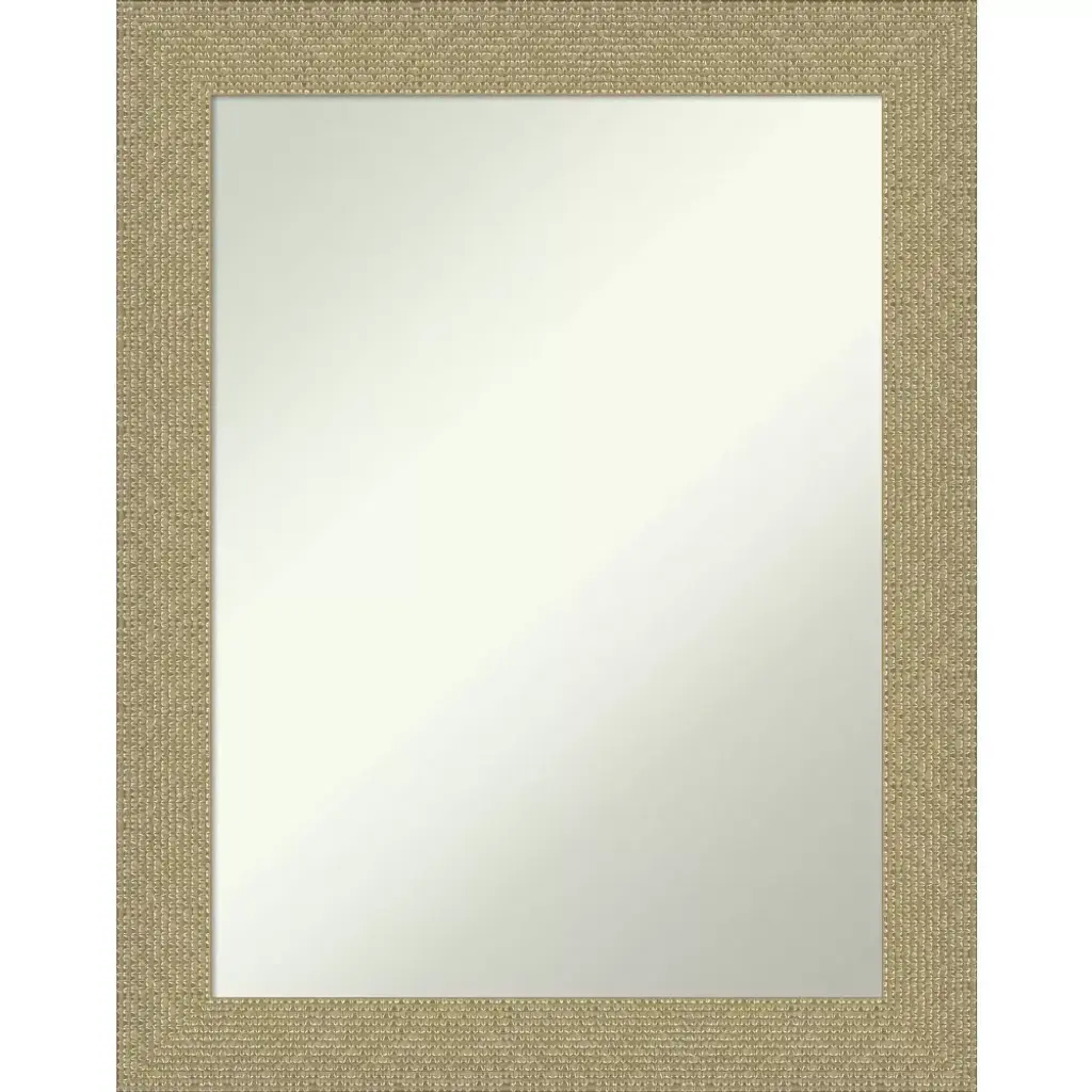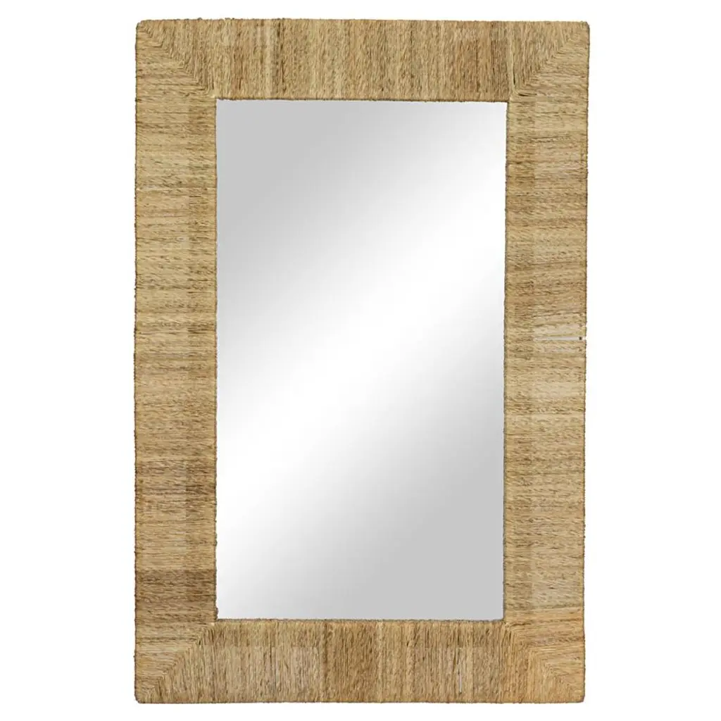 Perfect for any coastal decor, this frame is designed to resemble a natural basket weave. The frame uses a textured wrap that gives the authentic look of natural material, without the worries of moisture, giving you the option to use in a bathroom. The beige coloring of the frame is complemented by a dark brown liner that surrounds the 1" beveled mirror. May be hung either vertically or horizontally.