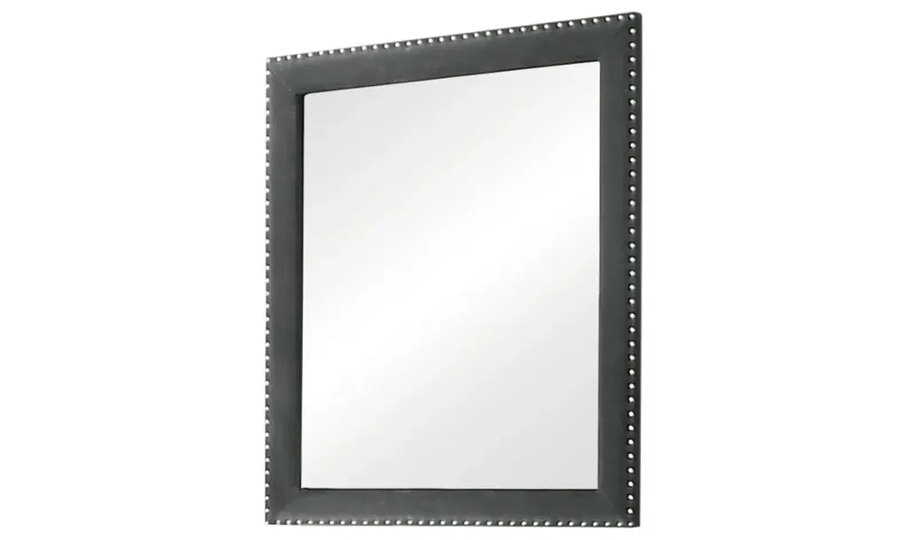 The Melody Mirror with Velvet Upholstered Frame by Coaster is the ultimate statement piece for any glamorous bedroom. This exquisite mirror, designed for royalty, adds a touch of luxurious sophistication that transforms your space into a stunning retreat. The entire frame is upholstered in rich matte velvet, offering a soft, plush texture that exudes elegance. Available in gray, the fabric is accented by hand-applied nailhead trim, enhancing the design’s modern, yet timeless allure. Whether placed atop a matching dresser or used as a standalone feature, the Melody Mirror radiates refined style, making it the perfect addition to a glam-style bedroom.