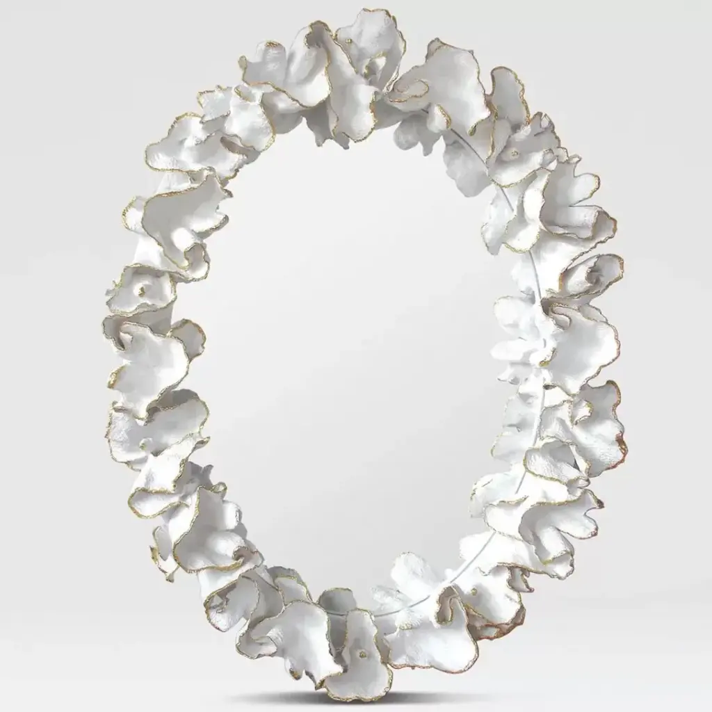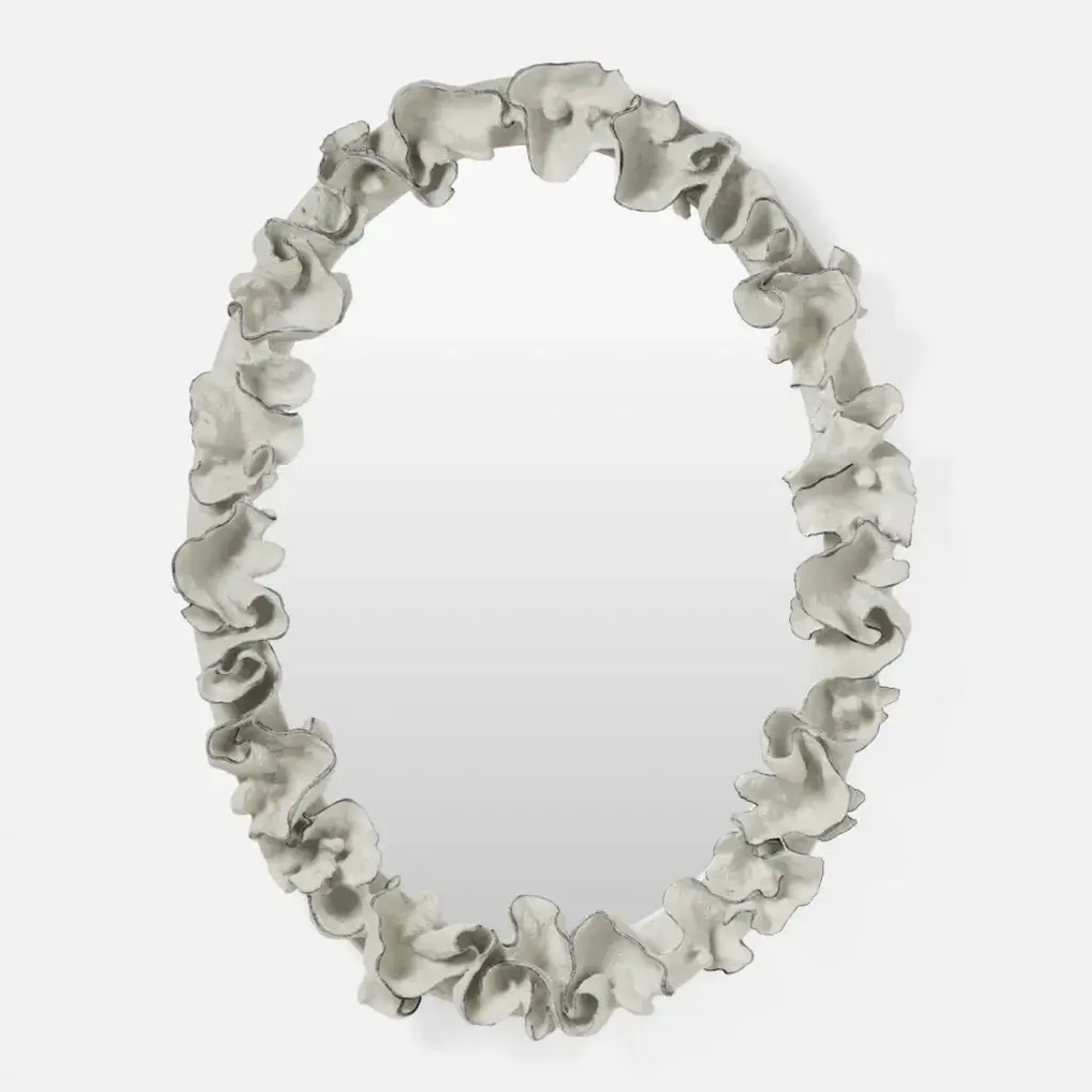 Coco 36"w X 47"h Silver With White Faux Coral Oval Mirror