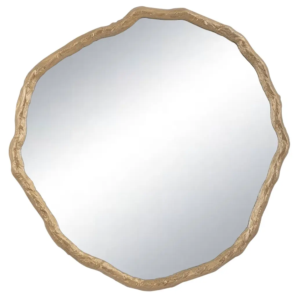 The Cog Mirror is a stunning marriage of industrial flair and chic contemporary design. Crafted from aluminum, the frame in a Champagne finish takes the form of a cog that showcases subtle ridges for a modern look. This stylish, circular mirror is affixed with French cleats.
