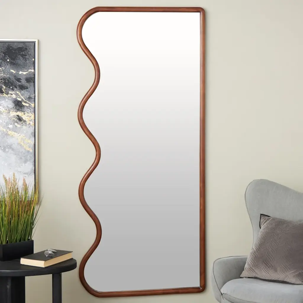 Cole And Grey Wood Wavy Room Brown Wall Mirror