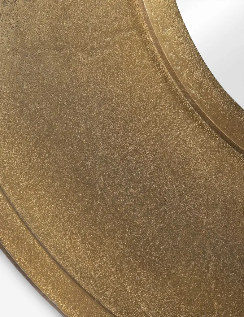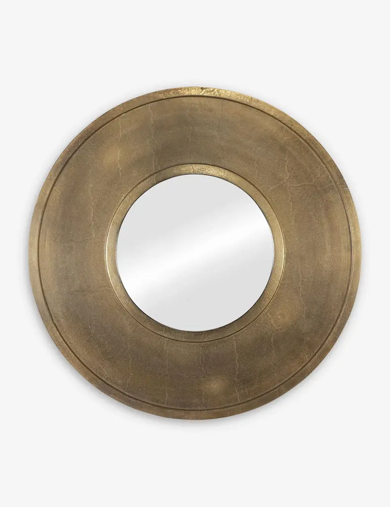 The Colman mirror comes with luster. Its cast metal frame features a textural brass finish for a subtle radiance on your wall. With its round profile, this wide-framed mirror styles with understated impact in any curation.