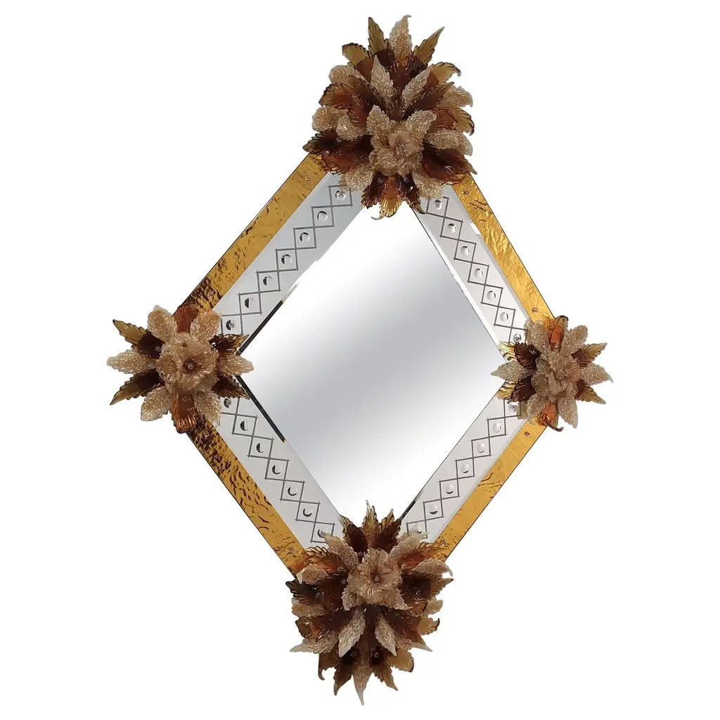 Colonial Style Reverse Painted Glass Wall Mirror- Cuzco Snowflake