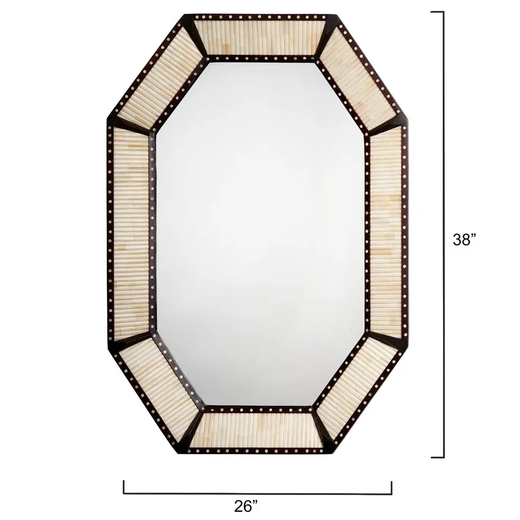The timeless look of this handcrafted mango wood wall mirror is enhanced with a unique octagonal frame accented using the ancient decorative tradition of bone inlay. Sure to be cherished for generations, it can be hung vertically or horizontally to add light and dimension to any room of your home.