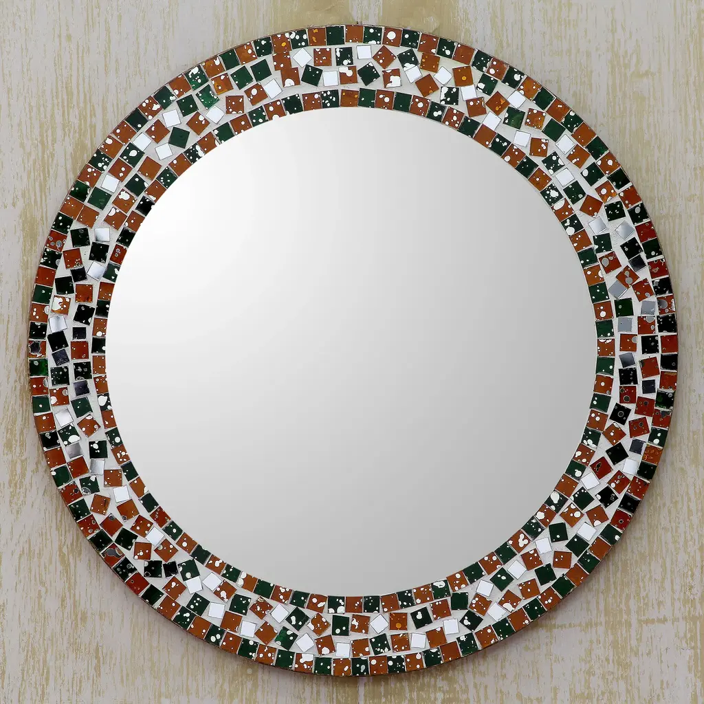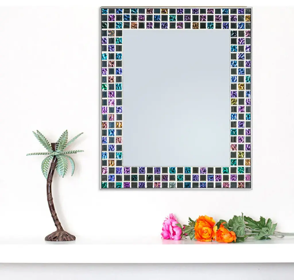 It is a stunning mirror. A perfect choice for any accent wall or bathroom. This mirror keeps your room feeling youthful and engaging. It provides a vibrant taste to a variety of settings. Truly a Beautiful Mirror.- Handmade by gifted artist- Beautiful imported mosaic tiles- Made to order- Custom sizes available