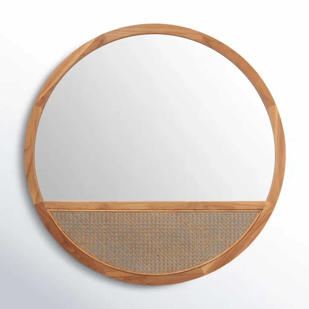 Named after a volcanic archipelago off the east coast of Africa, the Comoros mirrors deliver energetic warmth through natural features. Split rattan is hand-wrapped over a steam-bent rattan pole frame of two segmented concentric circles with a mirrored glass center. Hang over a bathroom countertop or in a living room to add warmth and depth. Available in two sizes.
