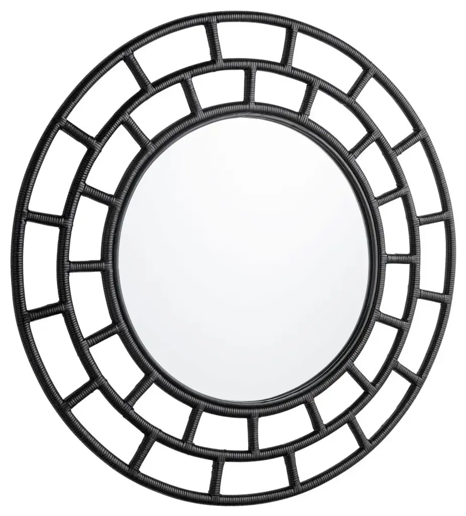 Named after a volcanic archipelago off the east coast of Africa, the Comoros mirrors deliver energetic warmth through natural features. Split rattan is hand-wrapped over a steam-bent rattan pole frame of two segmented concentric circles with a mirrored glass center. Hang over a bathroom countertop or in a living room to add warmth and depth. Available in two sizes.