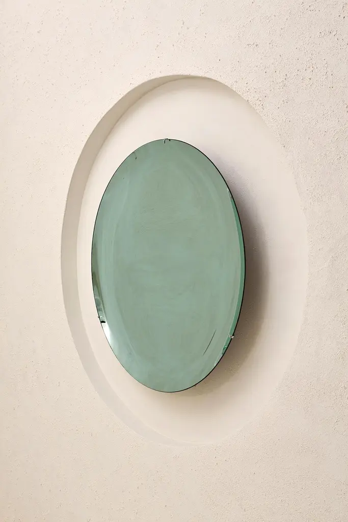 Concave Mint Green Mirror by HomaDimensions: D 97 x H 7 cmMaterials: Concave silver mirror. HOMA is a contemporary design atelier based in Istanbul. The atelier’s trademark processes are handblown glass, glass fusing and mirroring, created through the use of multidisciplinary techniques and materials. Over time, with meticulous research and experimentation HOMA has acquired unique expertise in mirrors, lighting and home interior objects thus elevating things of function to the status of art. Handcraft HOMA has discovered one of the last remaining masters of handcrafted mirroring in the Eastern Mediterranean. The atelier is original in its simultaneous use of different techniques to create organic and flowing mirror shapes. Each piece celebrates reflection, translucency, movement, light, time, multiple layering and aesthetic, spontaneity…Object HOMA’s pieces are an exploration of organic, abstract, as well as unexpected flowing lines and shapes. Our design service offer is presented in a catalogue of over 50 designs in fluid and geometric shapes achieved through multidisciplinary techniques.Materiality Through the use of mixed textures and the layering of mirror elements unexpected effects are created on glass, which play with one’s visual perception as well as the surrounding space. Glass, stone, marble, messing mirror techniques, bronze, wood and clay are just some of the Earth’s materials that find their way into HOMA’S offerings. HOMA offers a vast materials library.Architecture Formally trained in interior architecture, HOMA founder, Tuğba Koç has transformed her knowledge and experience into layered aesthetic design objects. Now, with a team of architects and artisans, Tuğba applies her hands in a workshop environment on interior and exterior objects to enrich earth-derived, breathing, living materials. HOMA’s interior objects are informed by art and driven by the philosophy that nothing artificial should be allowed to interfere with the energy of one’s living environment.