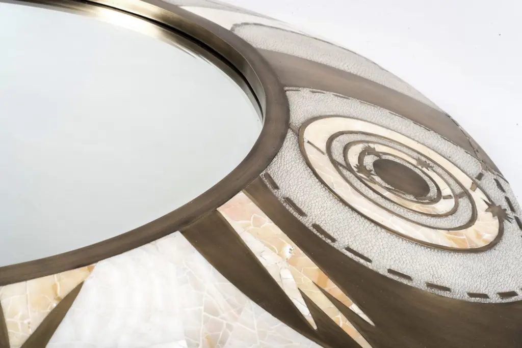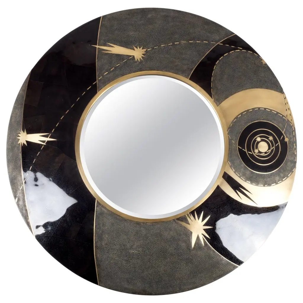 Constellation Mirror In Cream Shagreen Shell & Bronze-Patina Brass By Kifu Paris