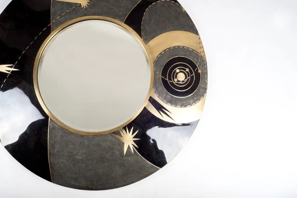 Constellation Mirror In Shagreen Shell & Bronze-Patina Brass By Kifu Paris