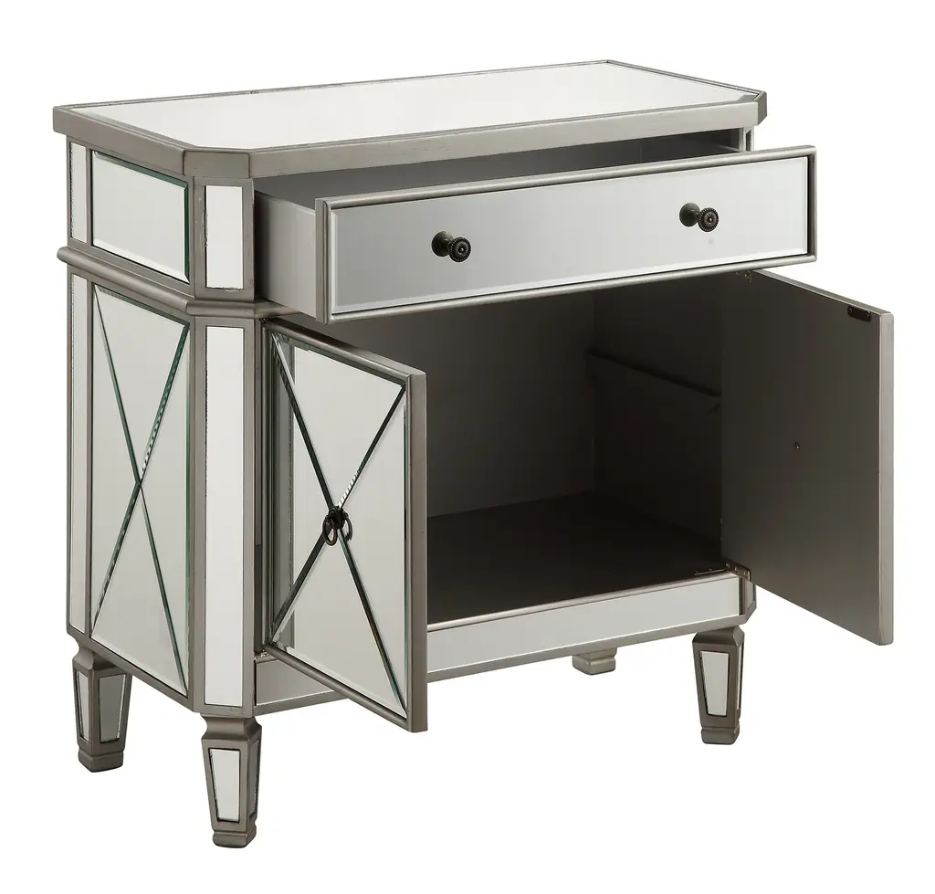 This Cabinet from the Contempo collection by Elegant Lighting will enhance your home with a perfect mix of form and function. The features include a Silver with Clear Mirror finish applied by experts. This item qualifies for free shipping!