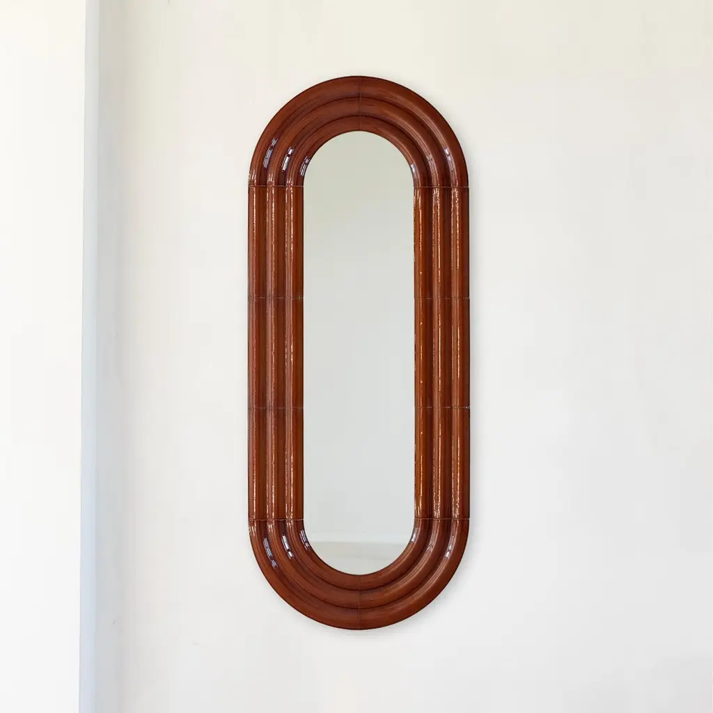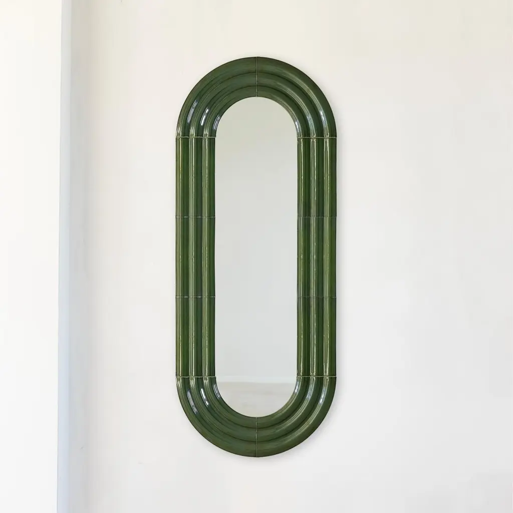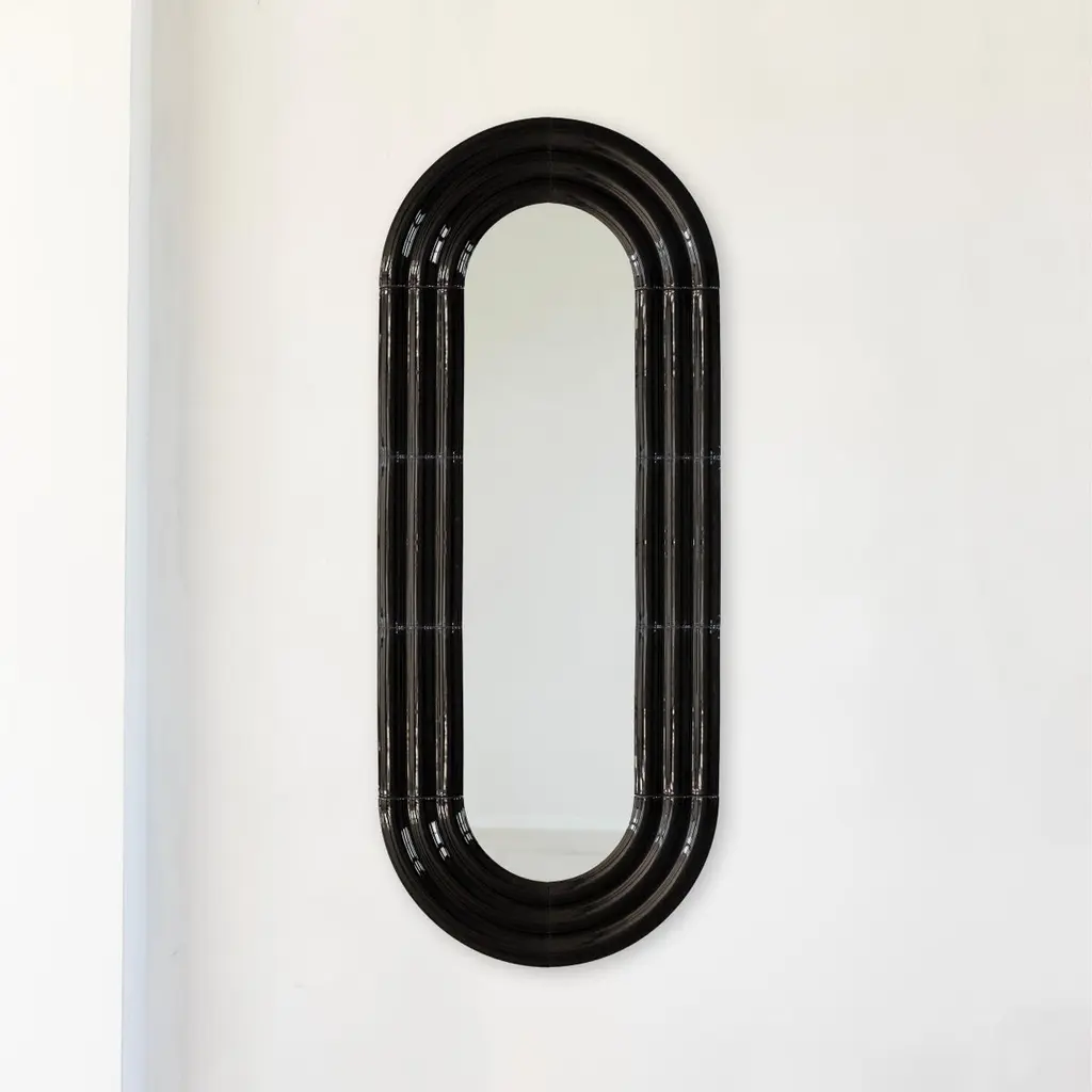 ELO 2 MirrorSigned by Pani JurekDimensions: H150 x 60 x 4 cmHand glazed ceramicColor shown on main image: Black_________________________________Pani Jurek is a Polish design studio founded by artist and designer Magdalena Jurek. Pani Jurek designs lighting fixtures, tables, mirrors and vases. The TRN collection, comprising tables, lighting and mirrors, is a tribute to the painter Jan Tarasin. Discover the unique charm of the Elo collection of mirrors, crafted by renowned Polish artist Pani Jurek. Each piece in this collection is meticulously handmade from glazed ceramic, blending artisanal expertise with contemporary design. Available in a variety of colors, shapes, and sizes, the Elo mirrors adapt effortlessly to any interior style, making them a perfect fit for both modern and classic spaces.Crafted with high-quality glazed ceramic, the Elo mirrors bring elegance, durability, and a luxurious finish to your home. With customizable options, you can select from a wide palette of vibrant or subtle colors to create a mirror that truly reflects your personal style. Whether for a modern living room, a minimalist bathroom, or a sophisticated entryway, these versatile mirrors are designed to enhance any space.More than just functional accessories, the Elo mirrors are artistic statements. They reflect light beautifully while adding character and depth to your walls. Perfect for those who appreciate timeless design with a touch of artistic flair, this collection blends seamlessly with a variety of décor preferences.Elevate your interior design with the Elo collection of handcrafted glazed ceramic mirrors. Explore the collection now and transform your walls into captivating works of art.