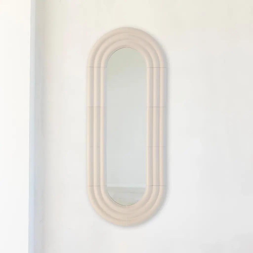 ELO 2 MirrorSigned by Pani JurekDimensions: H150 x 60 x 4 cmHand glazed ceramicColor shown on main image: Green_________________________________Pani Jurek is a Polish design studio founded by artist and designer Magdalena Jurek. Pani Jurek designs lighting fixtures, tables, mirrors and vases. The TRN collection, comprising tables, lighting and mirrors, is a tribute to the painter Jan Tarasin. Discover the unique charm of the Elo collection of mirrors, crafted by renowned Polish artist Pani Jurek. Each piece in this collection is meticulously handmade from glazed ceramic, blending artisanal expertise with contemporary design. Available in a variety of colors, shapes, and sizes, the Elo mirrors adapt effortlessly to any interior style, making them a perfect fit for both modern and classic spaces.Crafted with high-quality glazed ceramic, the Elo mirrors bring elegance, durability, and a luxurious finish to your home. With customizable options, you can select from a wide palette of vibrant or subtle colors to create a mirror that truly reflects your personal style. Whether for a modern living room, a minimalist bathroom, or a sophisticated entryway, these versatile mirrors are designed to enhance any space.More than just functional accessories, the Elo mirrors are artistic statements. They reflect light beautifully while adding character and depth to your walls. Perfect for those who appreciate timeless design with a touch of artistic flair, this collection blends seamlessly with a variety of décor preferences.Elevate your interior design with the Elo collection of handcrafted glazed ceramic mirrors. Explore the collection now and transform your walls into captivating works of art.