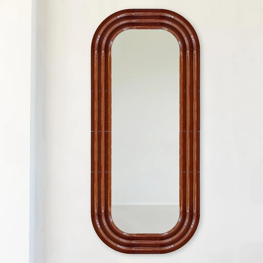 ELO 4 MirrorSigned by Pani JurekDimensions: H180 x 80 x 4 cmHand glazed ceramicColor shown on main image: Green_________________________________Pani Jurek is a Polish design studio founded by artist and designer Magdalena Jurek. Pani Jurek designs lighting fixtures, tables, mirrors and vases. The TRN collection, comprising tables, lighting and mirrors, is a tribute to the painter Jan Tarasin. Discover the unique charm of the Elo collection of mirrors, crafted by renowned Polish artist Pani Jurek. Each piece in this collection is meticulously handmade from glazed ceramic, blending artisanal expertise with contemporary design. Available in a variety of colors, shapes, and sizes, the Elo mirrors adapt effortlessly to any interior style, making them a perfect fit for both modern and classic spaces.Crafted with high-quality glazed ceramic, the Elo mirrors bring elegance, durability, and a luxurious finish to your home. With customizable options, you can select from a wide palette of vibrant or subtle colors to create a mirror that truly reflects your personal style. Whether for a modern living room, a minimalist bathroom, or a sophisticated entryway, these versatile mirrors are designed to enhance any space.More than just functional accessories, the Elo mirrors are artistic statements. They reflect light beautifully while adding character and depth to your walls. Perfect for those who appreciate timeless design with a touch of artistic flair, this collection blends seamlessly with a variety of décor preferences.Elevate your interior design with the Elo collection of handcrafted glazed ceramic mirrors. Explore the collection now and transform your walls into captivating works of art.