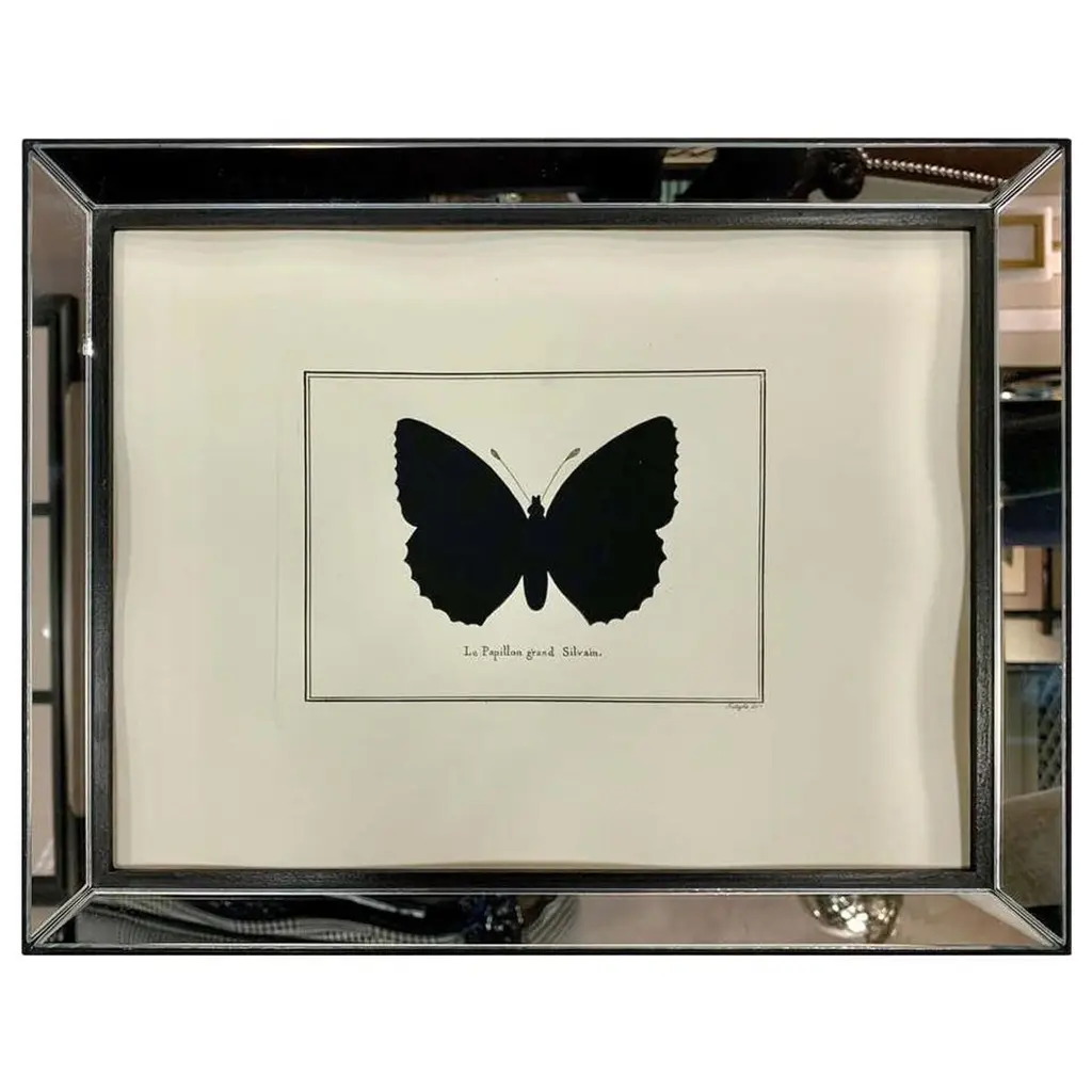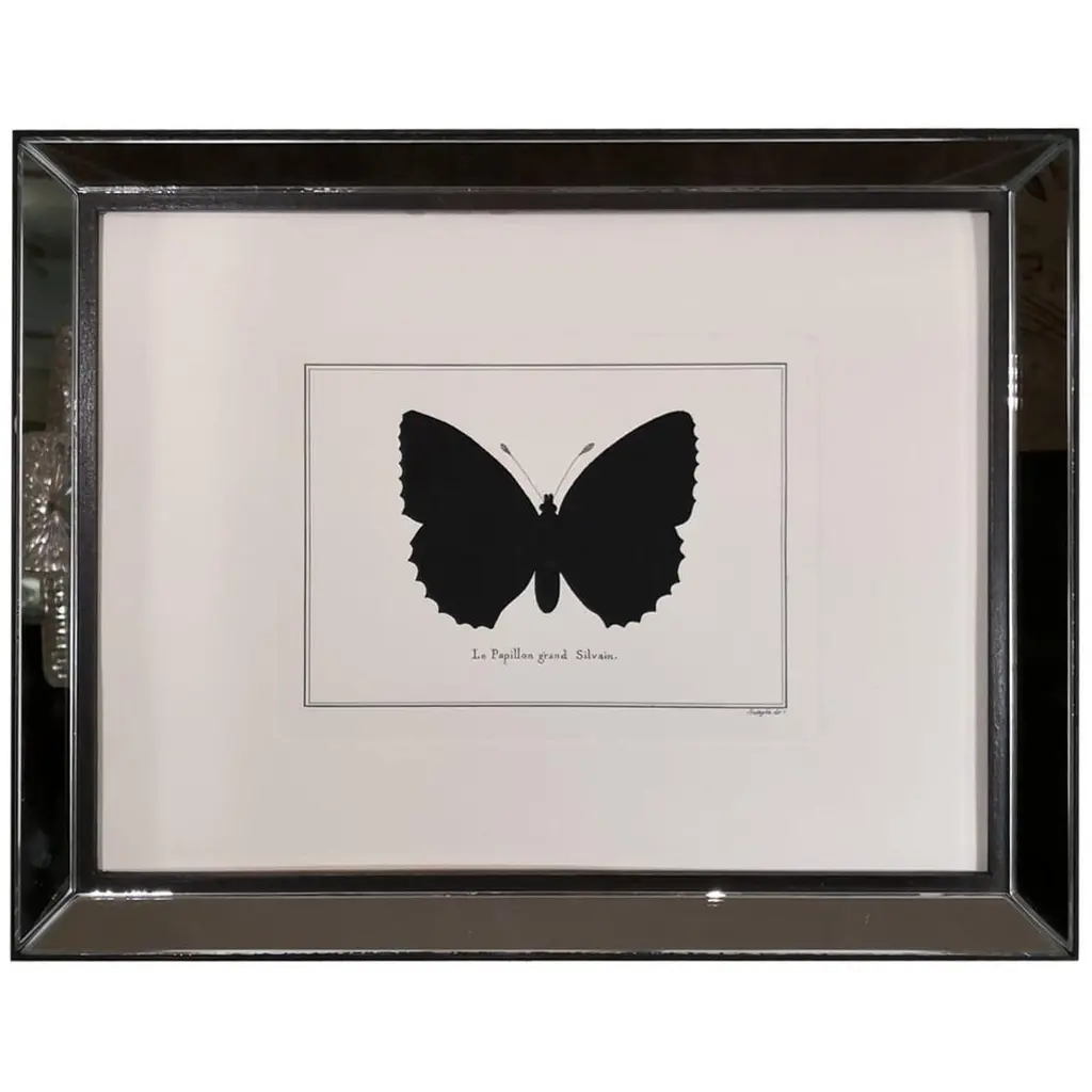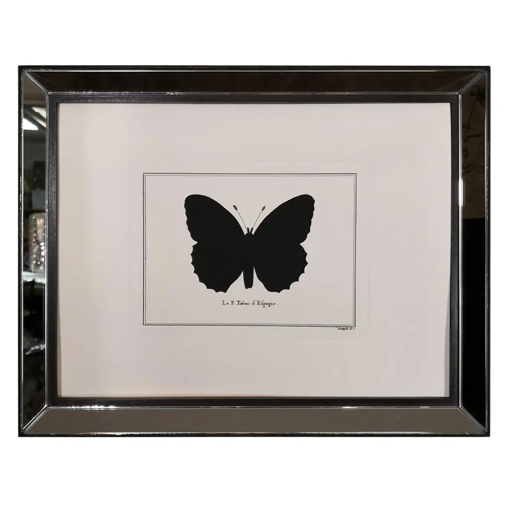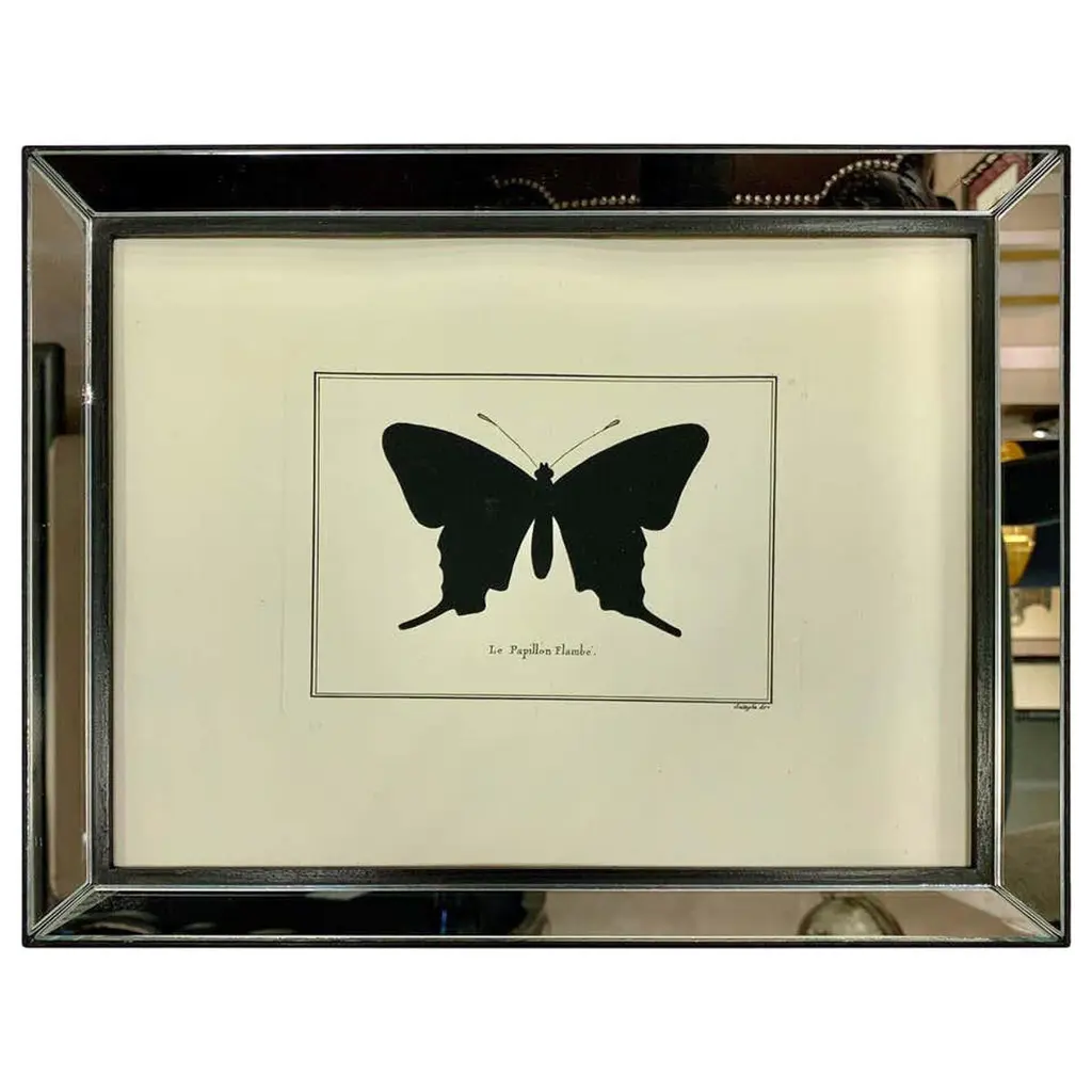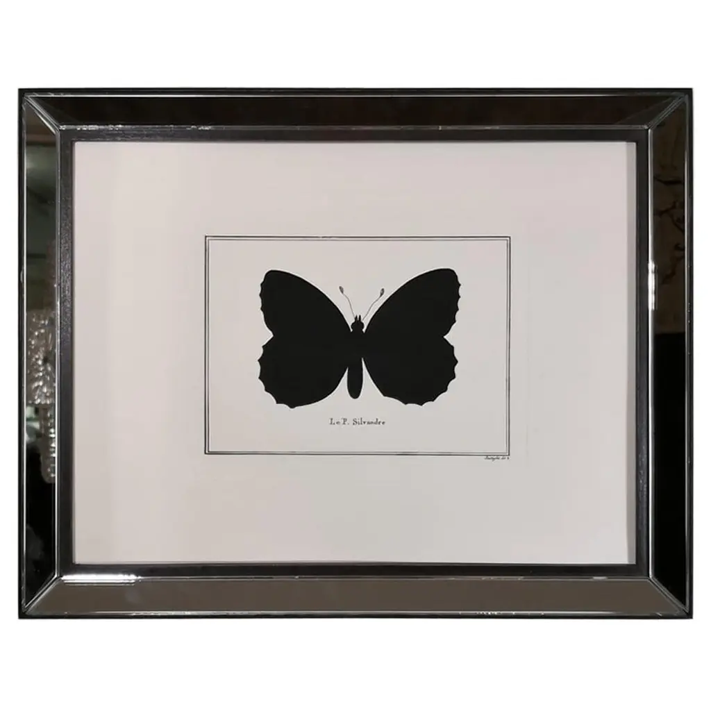 Contemporary Italian Hand Colored Machaon Butterfly Print With Mirror Frame