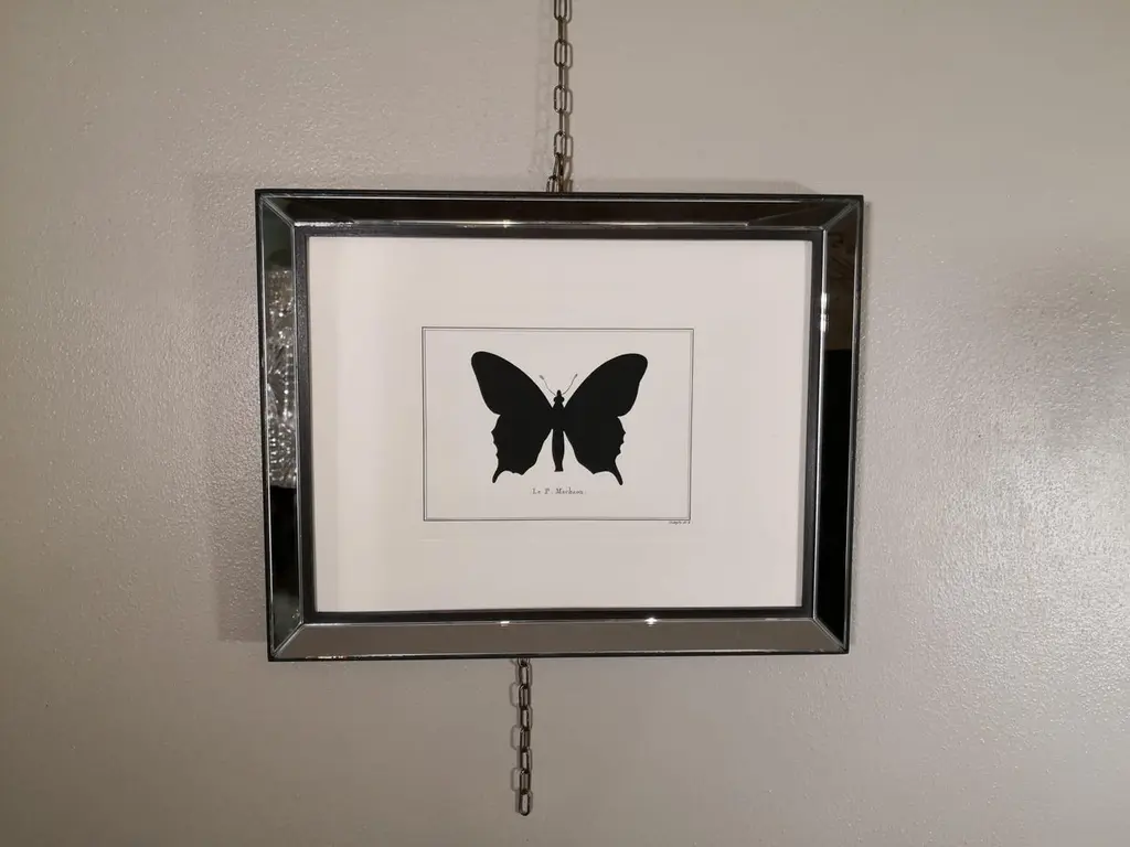 Artistic decorative hand water coloured print representing a Papilio Machaon butterfly.This print has been pressed with an ancient press called "a Stella" and entirely hand water coloured by a skilled draftsman.The frame is in tulipwood covered with polished edge mirror finished.8 different butterflies available to create a bright composition.Completely produced in Florence Italy by Artecornici design.Artecornici design produces hand coloured art prints, artisan frames, lightings, decorative accessories and furniture. All our products are designed and produced in Florence by Italian master craftsmen.