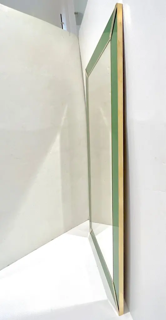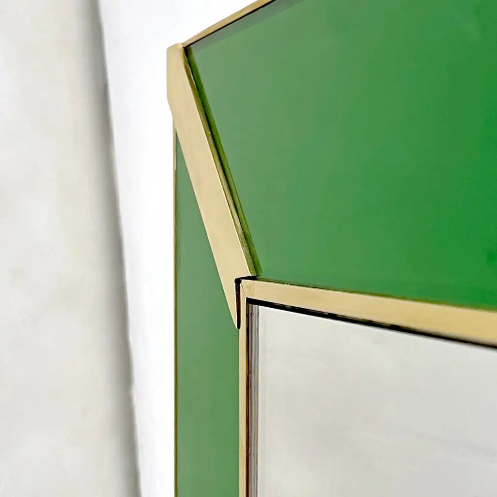 Contemporary Italian Minimalist Design Green Glass Mirror With Brass Accents