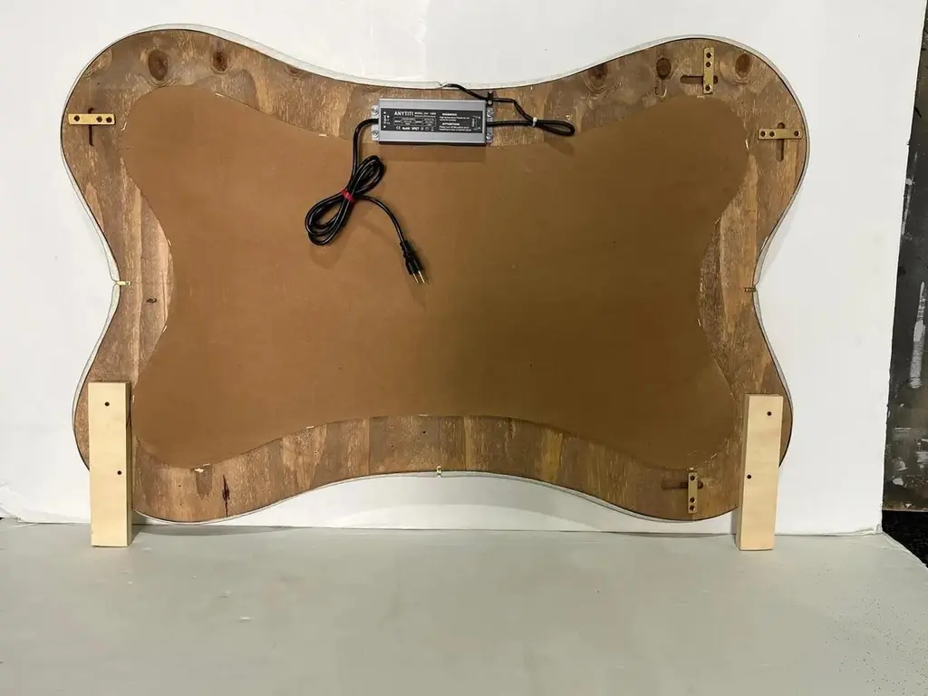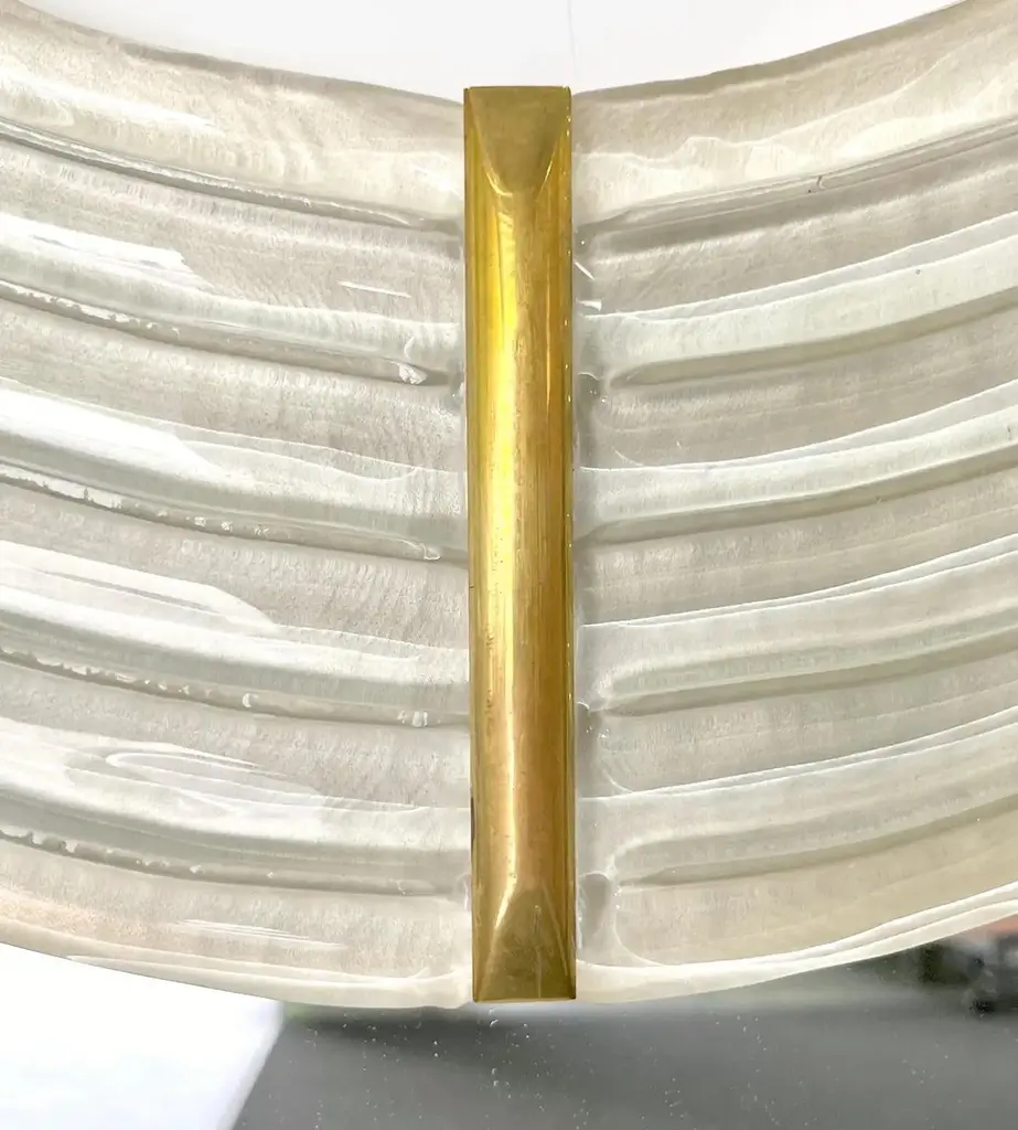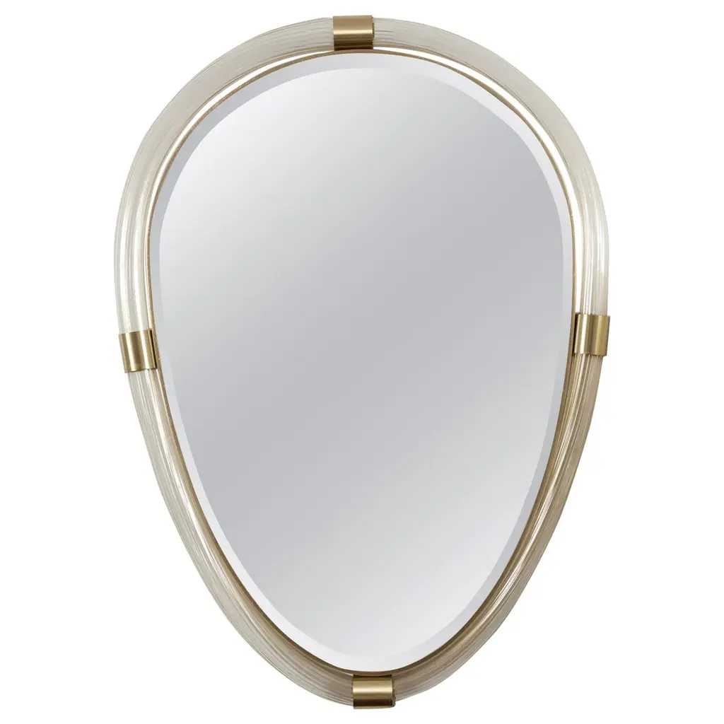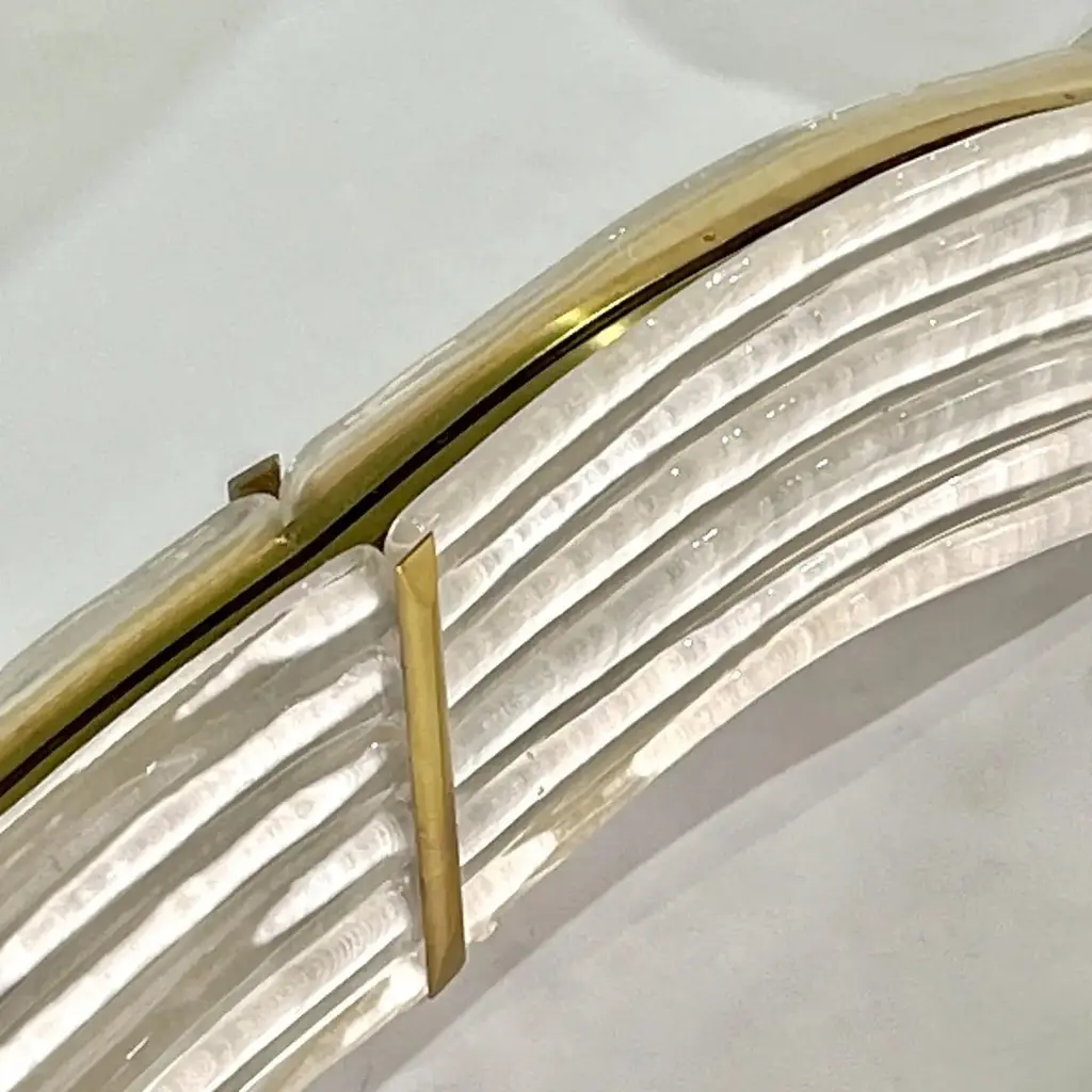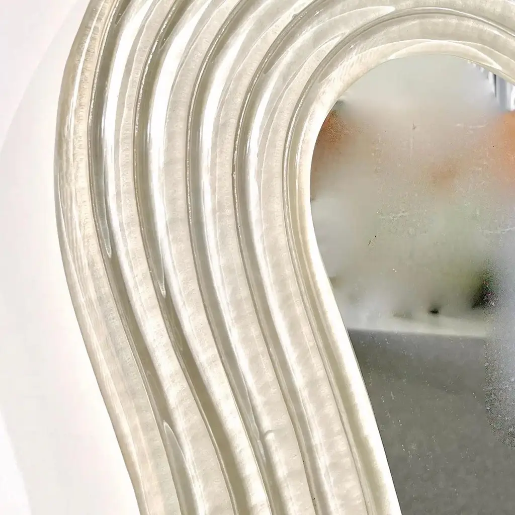 Contemporary Italian Pearl White Cream Murano Glass Brass Backlit Curved Mirror