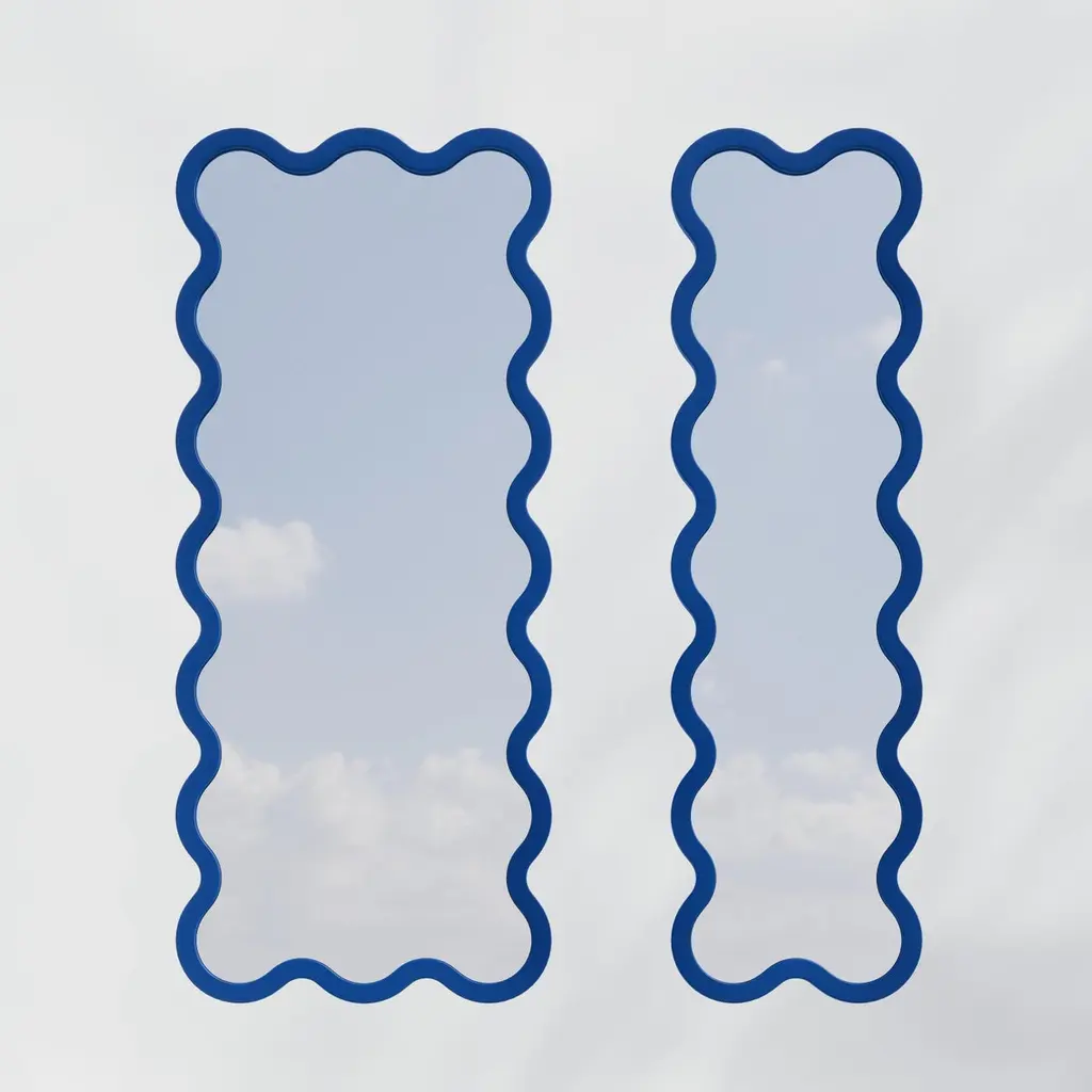 Contemporary Mirror 'Hvyli 14' By Oitoproducts, Blue Frame