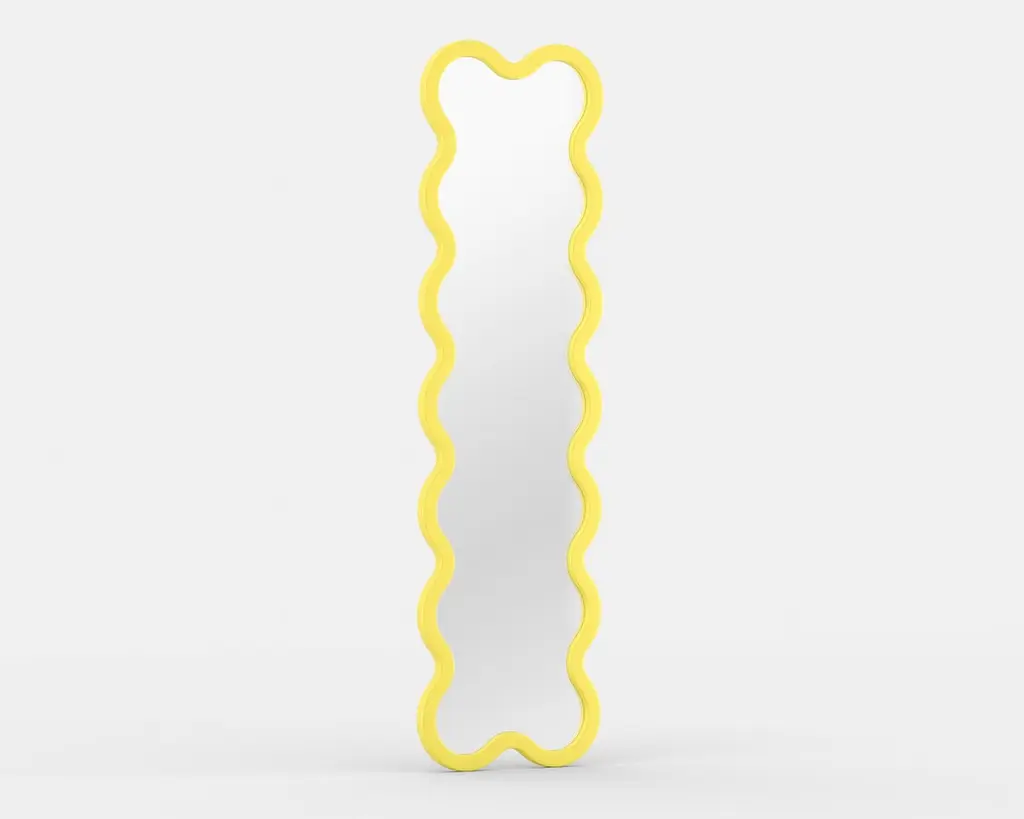 Contemporary Mirror 'Hvyli 14' by Oitoproducts.Yellow: RAL1016 Dimensions:H 180 x W 52 x D 3.5 cmH 71 x W 20.5 x D 1.3 inMaterials: Painted ecological water paint MDF, silver glass mirror, special rubber feet.AboutMelted, delicate forms have become a new world trend. With the help of modern high-tech productions, we can make our reality more complex and interesting.The collection of Hvyli mirrors will always be a beautiful accent in any interior: it can be a public space, a gallery, a cafe, a living room, or a bedroom. The mirrors have a monolithic, strong frame that protects the glass from mechanical damage during transportation.Also, the mirror has special rubber feet on the bottom. It is possible to add a wall mount.There are five types of sizes in the collection, which you can find in the catalog.About OitoproductsOitoproducts is a young Ukrainian brand from Kiev. They want to change furniture trends and add more fashion and value to the product. Their mission is to make furniture part of thinking fashion, not just a daily item. They spend a lot of time on visual and technical beauty. Each product of the line is complex. They value manual labor and try to make every detail meaningful and quality.They support local manufacturers and create new items together. At the moment, Ukraine is not a big industrial giant, but there is a highlight. All our items are the result of manual labor, and it is always warmer and more emotional.