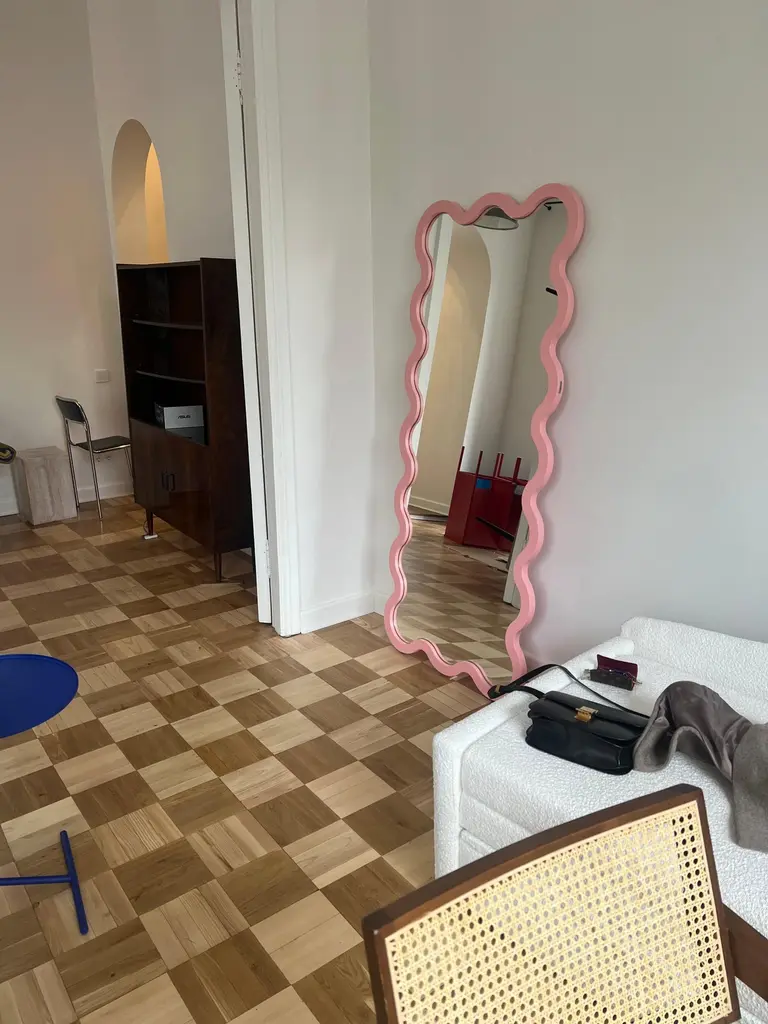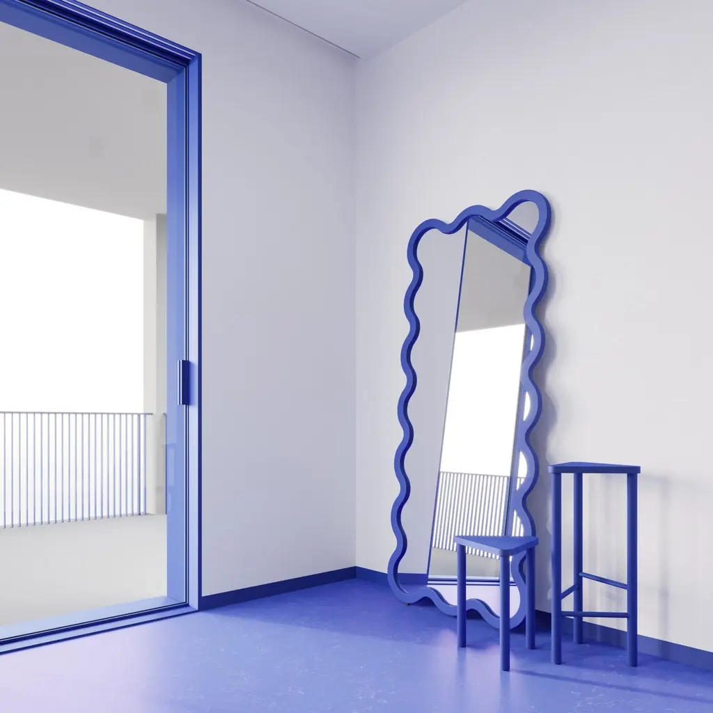 Contemporary Mirror 'Hvyli 16' by Oitoproducts.Dimensions:W 78 cm x H 180 cm x D 4 cmW 37 in x H 71 in x D 1.3 inMaterials: Painted ecological water paint MDF, silver glass mirror, special rubber feet.AboutMelted, delicate forms have become a new world trend. With the help of modern high-tech productions, we can make our reality more complex and interesting.The collection of Hvyli mirrors will always be a beautiful accent in any interior: it can be a public space, a gallery, a cafe, a living room, or a bedroom. The mirrors have a monolithic, strong frame that protects the glass from mechanical damage during transportation.Also, the mirror has special rubber feet on the bottom. It is possible to add a wall mount.There are five types of sizes in the collection, which you can find in the catalog.About OitoproductsOitoproducts is a young Ukrainian brand from Kiev. They want to change furniture trends and add more fashion and value to the product. Their mission is to make furniture part of thinking fashion, not just a daily item. They spend a lot of time on visual and technical beauty. Each product of the line is complex. They value manual labor and try to make every detail meaningful and quality.They support local manufacturers and create new items together. At the moment, Ukraine is not a big industrial giant, but there is a highlight. All our items are the result of manual labor, and it is always warmer and more emotional.