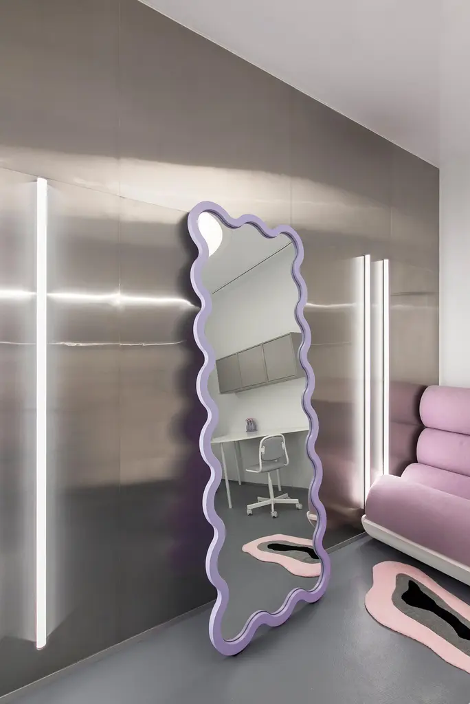 Contemporary Mirror 'Hvyli 16' by Oitoproducts.Light Pink - RAL3015Dimensions:W 78 cm x H 180 cm x D 4 cmW 37 in x H 71 in x D 1.3 inMaterials: Painted ecological water paint MDF, silver glass mirror, special rubber feet.AboutMelted, delicate forms have become a new world trend. With the help of modern high-tech productions, we can make our reality more complex and interesting.The collection of Hvyli mirrors will always be a beautiful accent in any interior: it can be a public space, a gallery, a cafe, a living room, or a bedroom. The mirrors have a monolithic, strong frame that protects the glass from mechanical damage during transportation.Also, the mirror has special rubber feet on the bottom. It is possible to add a wall mount.There are five types of sizes in the collection, which you can find in the catalog.About OitoproductsOitoproducts is a young Ukrainian brand from Kiev. They want to change furniture trends and add more fashion and value to the product. Their mission is to make furniture part of thinking fashion, not just a daily item. They spend a lot of time on visual and technical beauty. Each product of the line is complex. They value manual labor and try to make every detail meaningful and quality.They support local manufacturers and create new items together. At the moment, Ukraine is not a big industrial giant, but there is a highlight. All our items are the result of manual labor, and it is always warmer and more emotional.