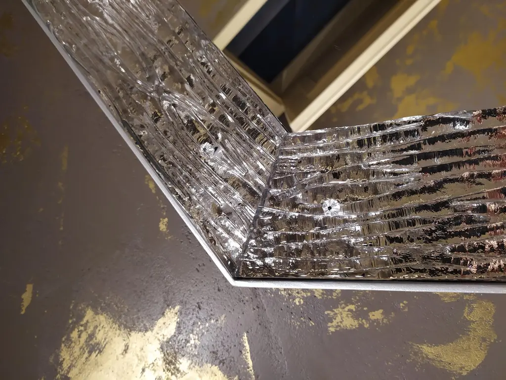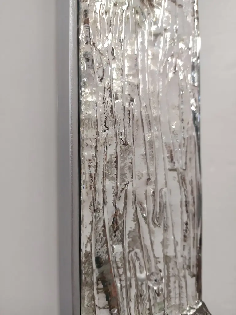 Contemporary style mirror of the 21st century, with Murano glass frame produced according to the ancient Muranese traditions and processes, frame which is then cut, shaped and polished in the corners and then silvered with pure silver, drilled and fixed to the structure with nails in glass, all completely handmade. The mirror is made according to the ancient traditions of Murano glass masters.Entirely handmade in the island of Murano by Fratelli Tosi, Made in Italy.