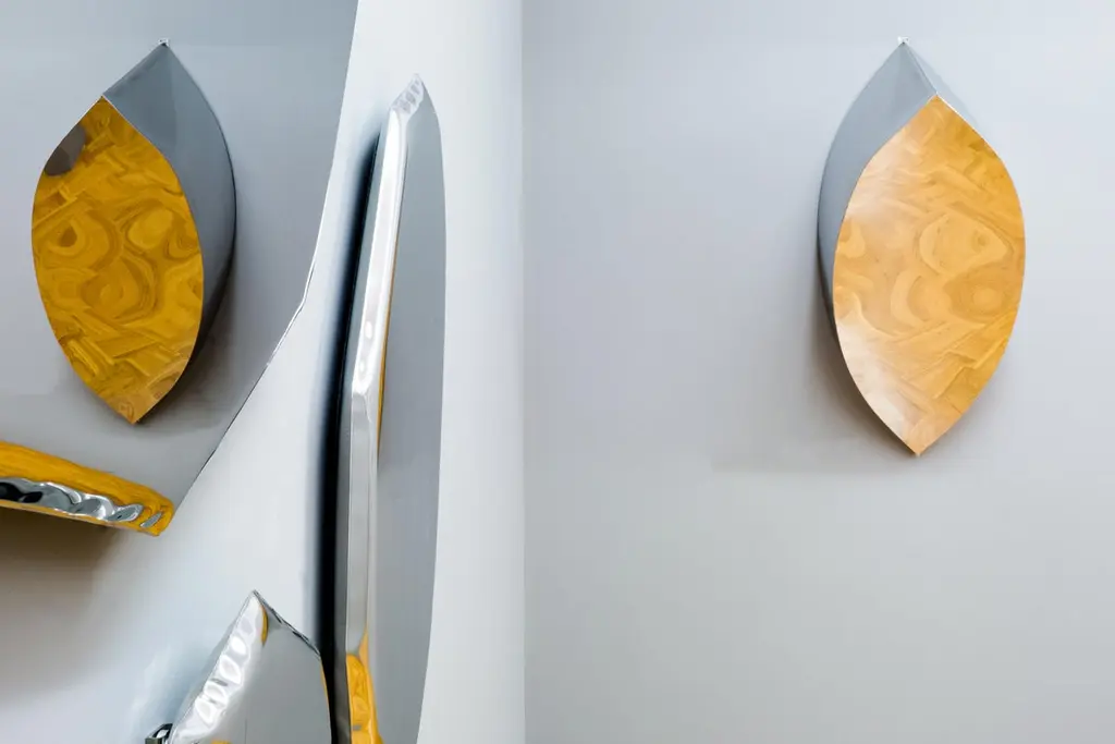 Mirror or Wall Mounted Object Lezka by ZietaMaterial & finish: Polished Stainless steelDimensionsHeight: 121.00 cmWidth: 58.00 cmDepth: 61.00 cmExperimental formA minimalist and delicate object alluding to the shape known as vesica piscis or mandorla. LEZKA is an experimentally crafted mirror-like wall sculpture, made from stainless steel and manufactured in FiDU technology.The power of proportionThe almond-shaped front of LEZKA is reminiscent of the powerful symbol of the gate of life or womb of the universe. In Greek and Roman mythology it was associated with fecundity, procreation, and renewing of life. On the other hand, the Pythagoreans identified this symbol with the perfect mixture of masculine and feminine energy. In Oskar Zieta’s reinterpretation of this multifaceted shape, it becomes a geometric play of surfaces. A piece of cut and closed-up air-blown steel profile becomes a mirror that reflects myths and contemporary beliefs. Every reflection it produces alludes to the symbolic dimension of Euclidean geometry and the power of cultural heritage.