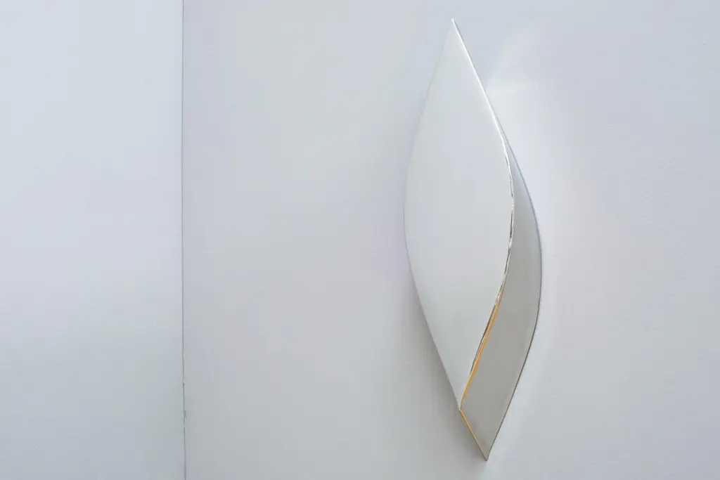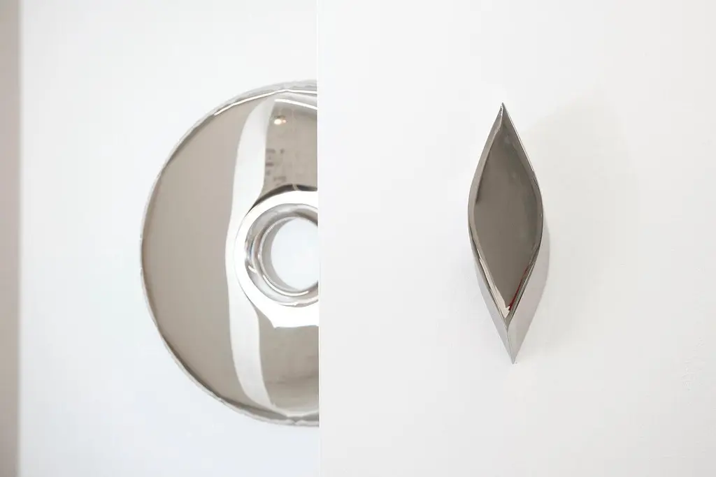 Mirror or Wall Mounted Object Lezka by ZietaMaterial & finish: Polished Stainless steelDimensionsHeight: 48.00 cmWidth: 14.00 cmDepth: 6.00 cmExperimental formA minimalist and delicate object alluding to the shape known as vesica piscis or mandorla. LEZKA is an experimentally crafted mirror-like wall sculpture, made from stainless steel and manufactured in FiDU technology.The power of proportionThe almond-shaped front of LEZKA is reminiscent of the powerful symbol of the gate of life or womb of the universe. In Greek and Roman mythology it was associated with fecundity, procreation, and renewing of life. On the other hand, the Pythagoreans identified this symbol with the perfect mixture of masculine and feminine energy. In Oskar Zieta’s reinterpretation of this multifaceted shape, it becomes a geometric play of surfaces. A piece of cut and closed-up air-blown steel profile becomes a mirror that reflects myths and contemporary beliefs. Every reflection it produces alludes to the symbolic dimension of Euclidean geometry and the power of cultural heritage.