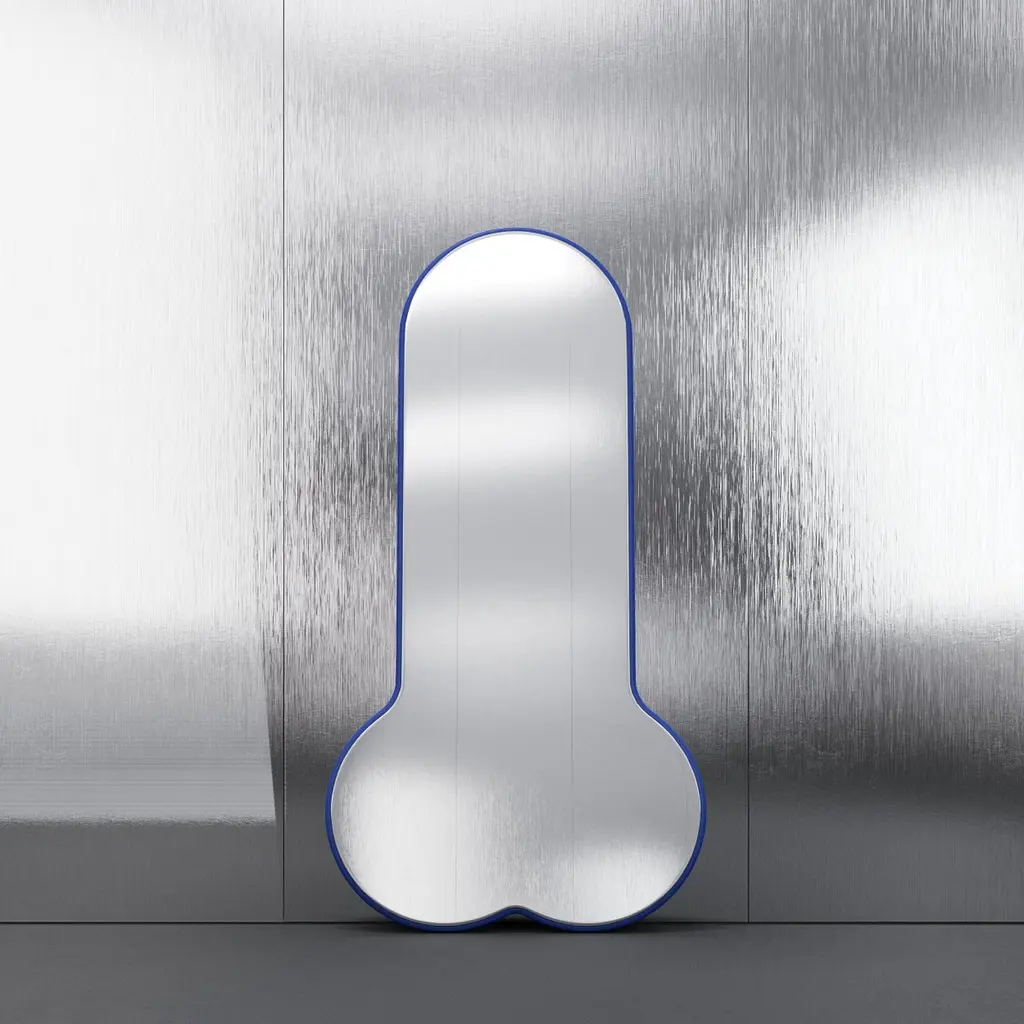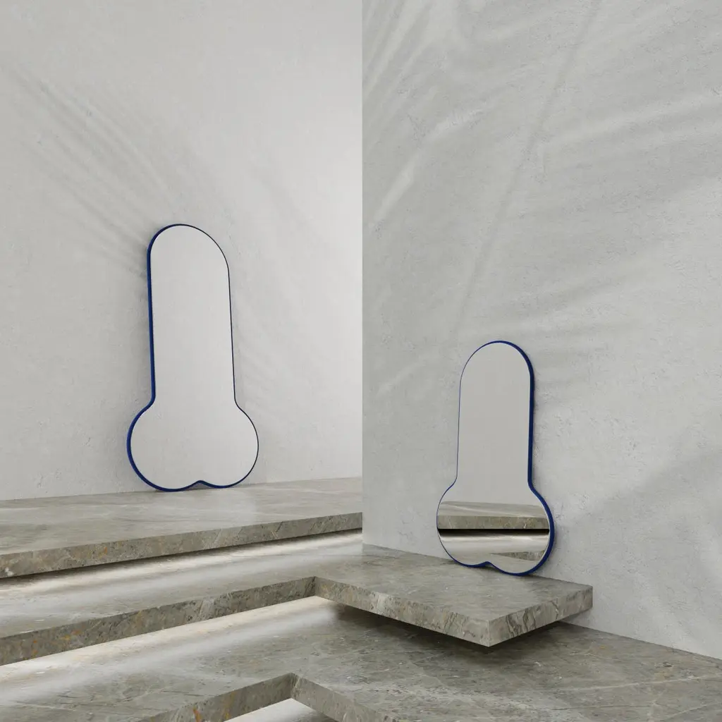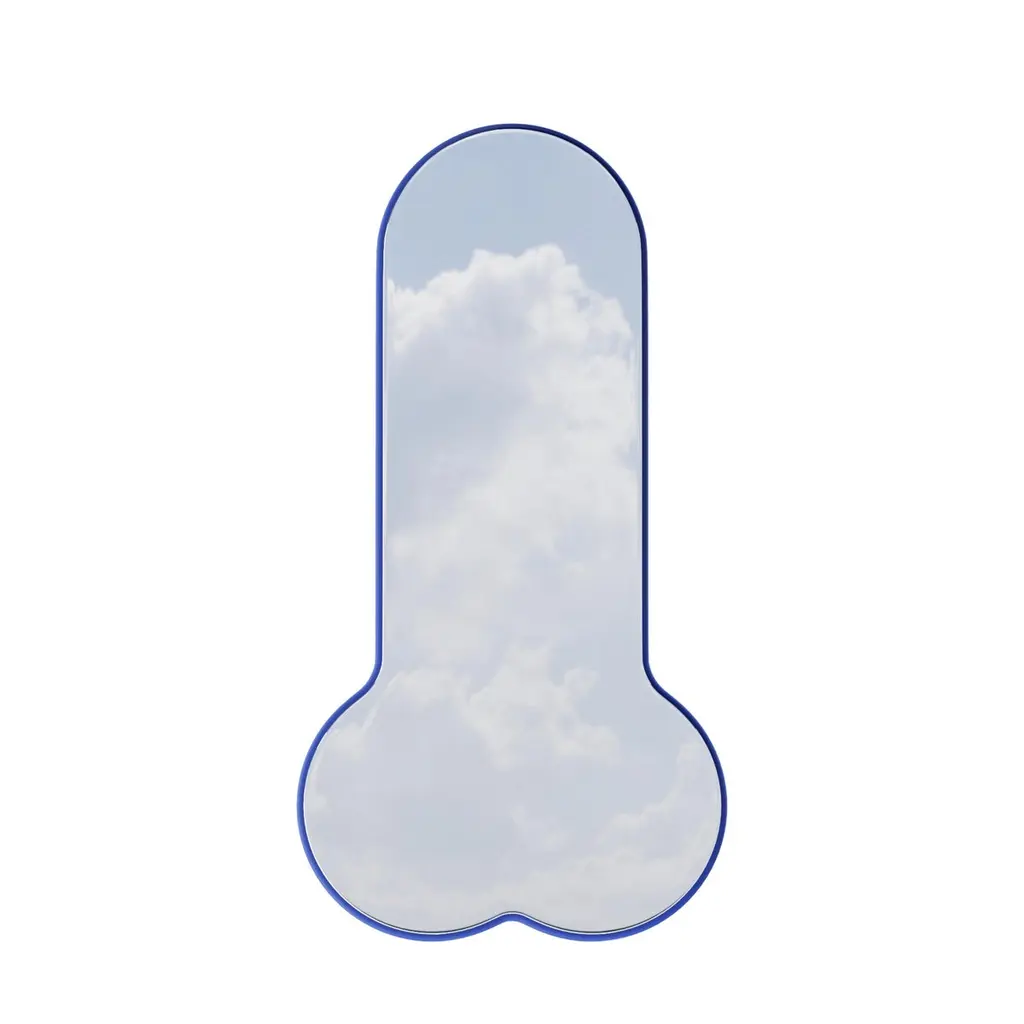 Contemporary Mirror 'Lovedick 180' By Oitoproducts, Blue Frame